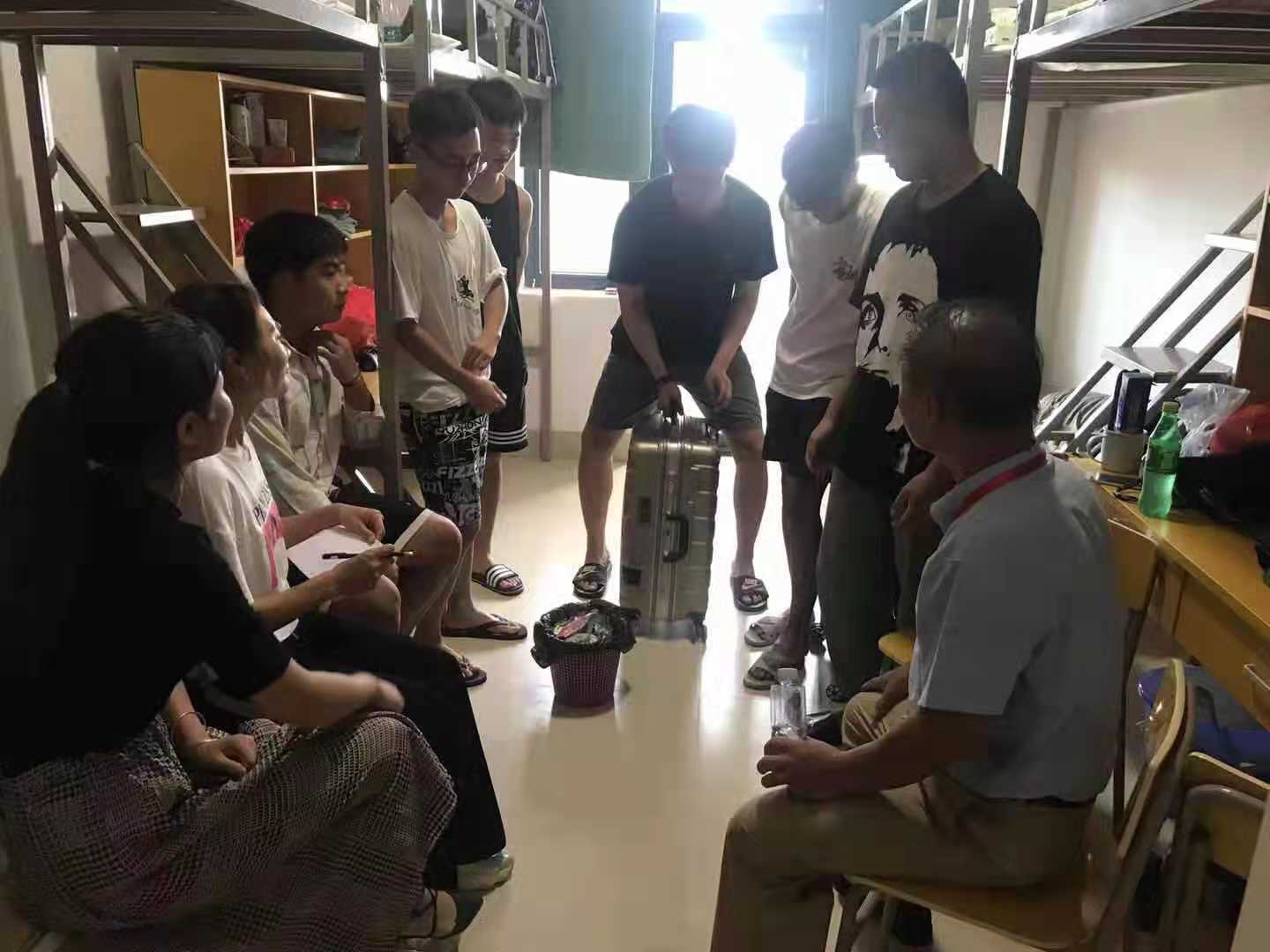 在接待新学员的同时,陈经义院长带领了各位老师去检查了新宿舍的床位安全。