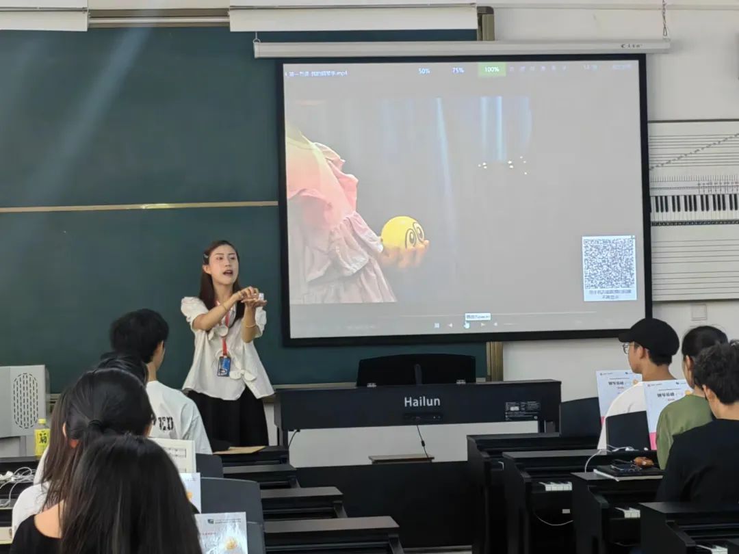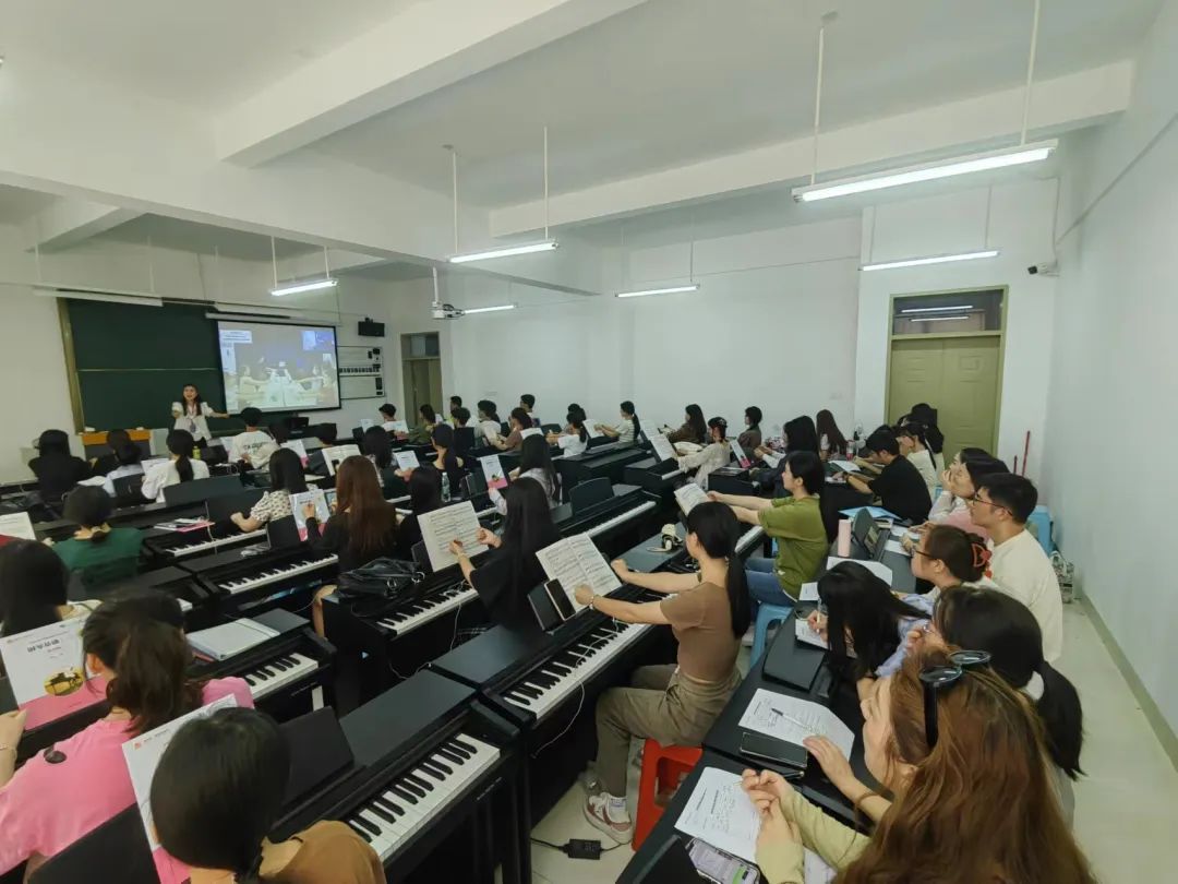 9月27日下午,我院表演艺术专业课堂教学公开周活动顺利开展,徐成倩老师讲授了一堂生动的钢琴基础启蒙课程《一闪一闪亮晶晶》。课上学生通过观看视频、模仿手型和视唱曲谱等方式,学习键盘弹奏的基本动作,结合不同的节拍练习《小星星变奏曲》等一系列环节完成本堂课的基础教学内容。各专业教师积极到场观摩,并跟随课堂互动了解学习本专业课程内容。