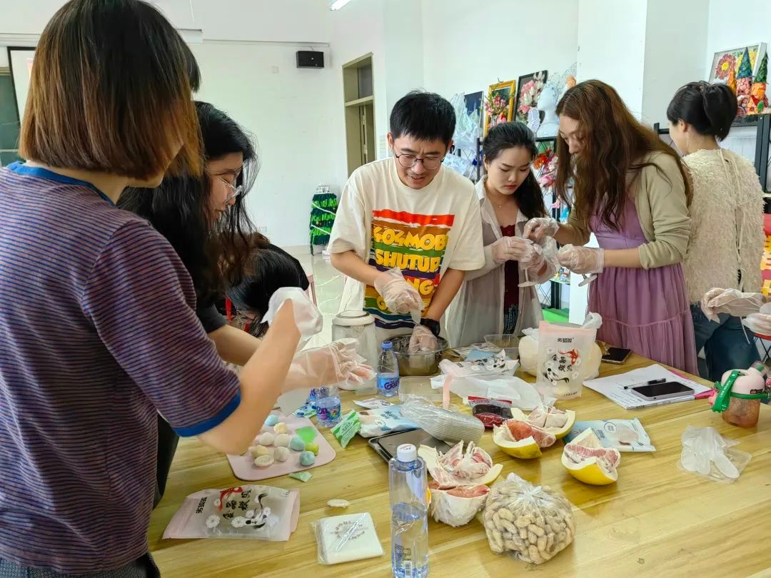 评课结束后,在我院专业组老师及辅导员老师们的共同参与下,大家还一起参与了一场特别的手工制作创意月饼活动。