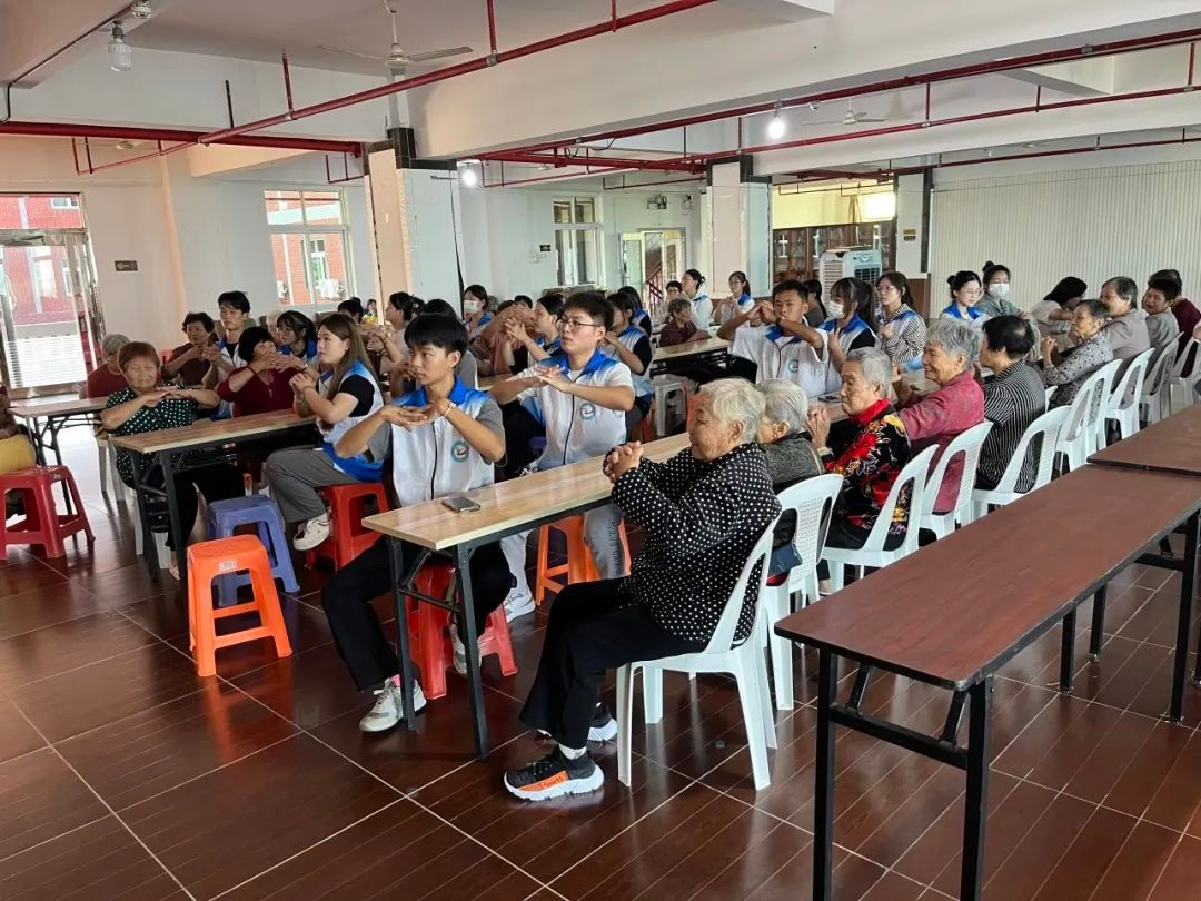 在击鼓传“花”之后,志愿者与老人们一起学习手指操——八段锦,让大脑可以更加灵活地控制手部运动、活动经脉,老人们在志愿者的引导下积极活动,锻炼身心。活动结束前,志愿者还为老人们展示了两首活泼可爱的舞蹈,现场气氛热烈浓厚,志愿者与老人们脸上都洋溢着幸福的笑容。