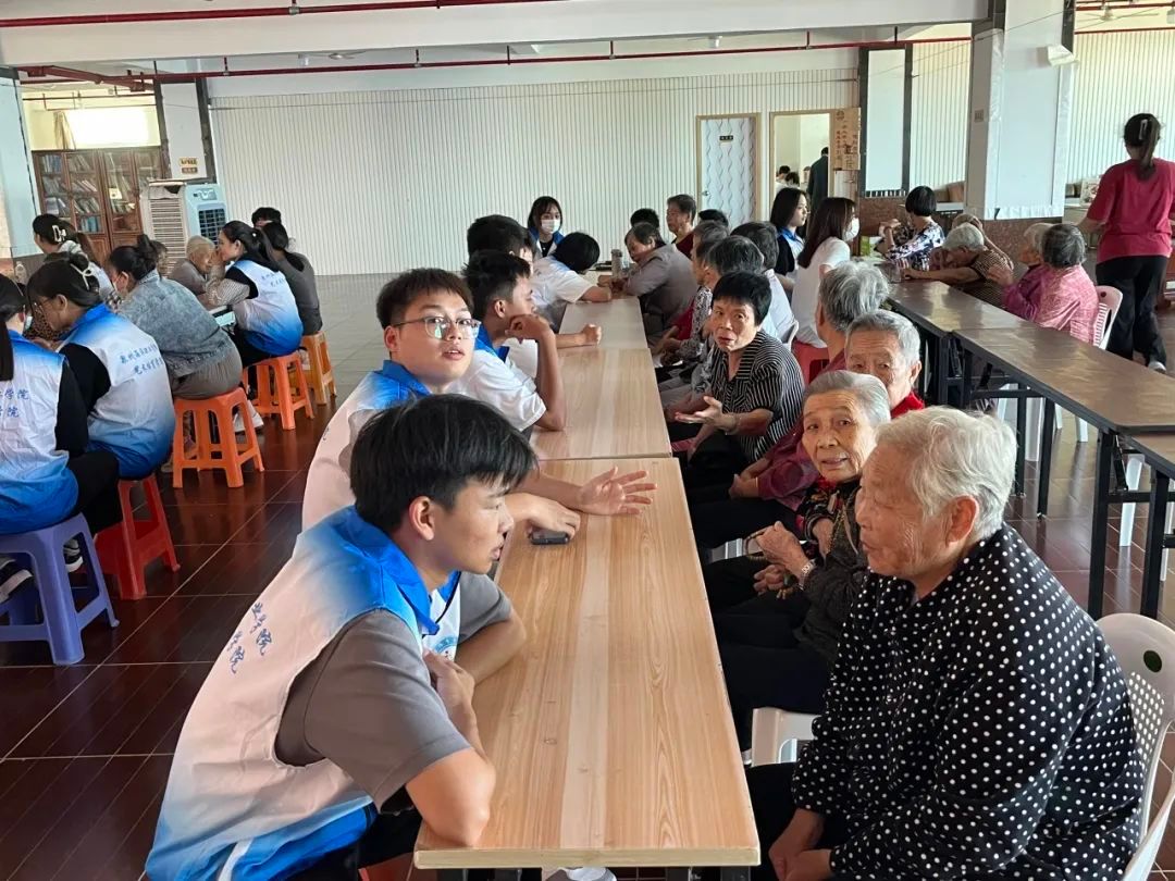 即使天气炎热,仍然抵挡不住志愿者的热情。志愿者深入敬老院各个角落,帮忙打扫卫生,为老人们打造干净整洁的生活环境。同时与老人们聚在一起聊天谈心,用陪伴与言语给老人们带去温暖,慢慢引导、放松老人们的心情,参与游戏互动。