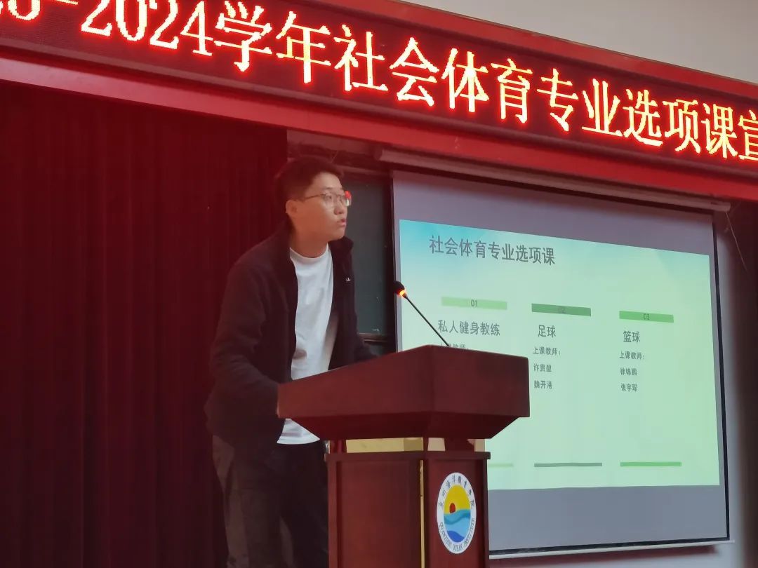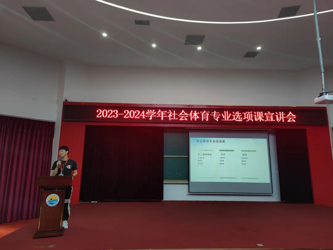 为进一步提升我院社会体育专业学生的专业技能,多方面培养、引导学生成长成才,12月15日中午,我院于2204报告厅开展了2023—2024学年社会体育专业选项课宣讲会,会议由社会体育专业负责人刘永珍老师主持,我院孙玉坤院长、陈绍勇书记、陈丽娜副院长及社会体育专业教师和辅导员老师们出席活动。