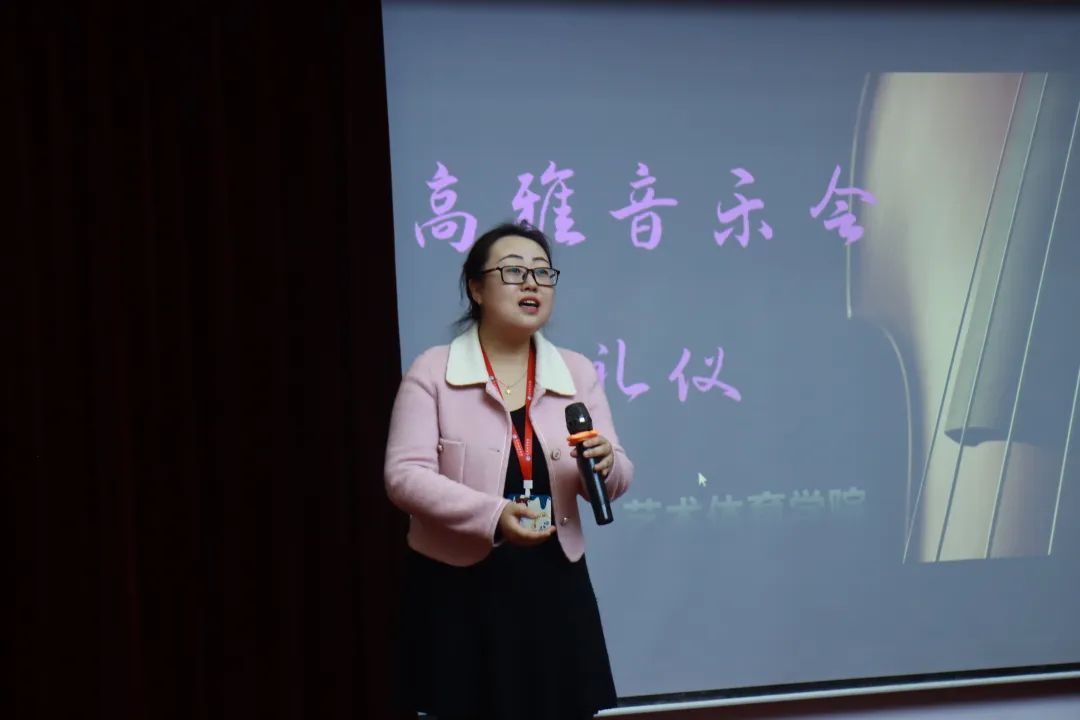 为进一步普及音乐会礼仪,提高我院学子基础艺术素养。12月20日下午,我院于2204报告厅开展音乐会礼仪培训讲座,副院长陈丽娜副教授主讲,表演艺术刘春燕老师及学生代表进行演示,培训对象主要为我院表演艺术专业学子。