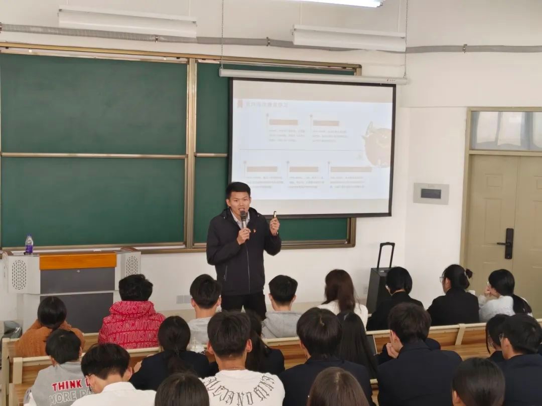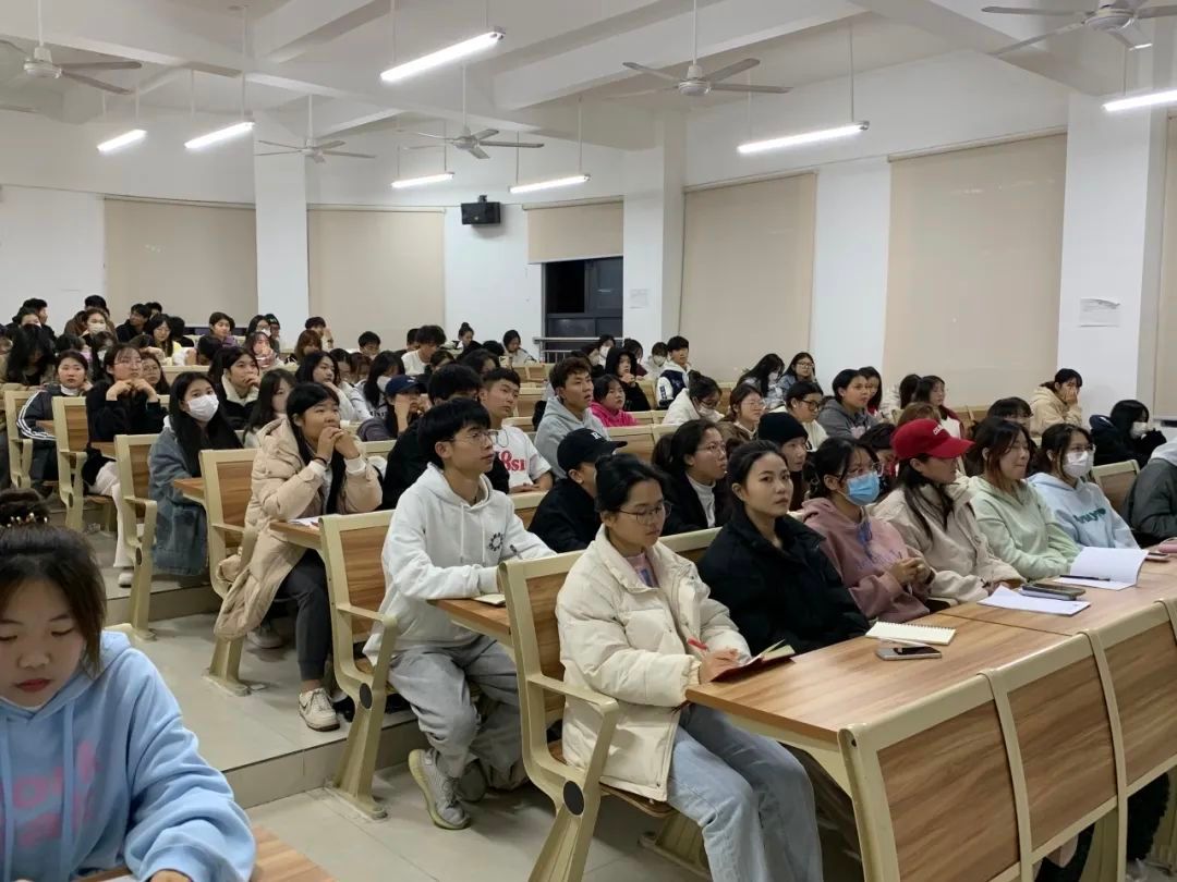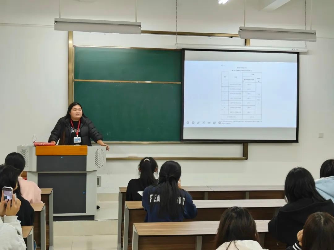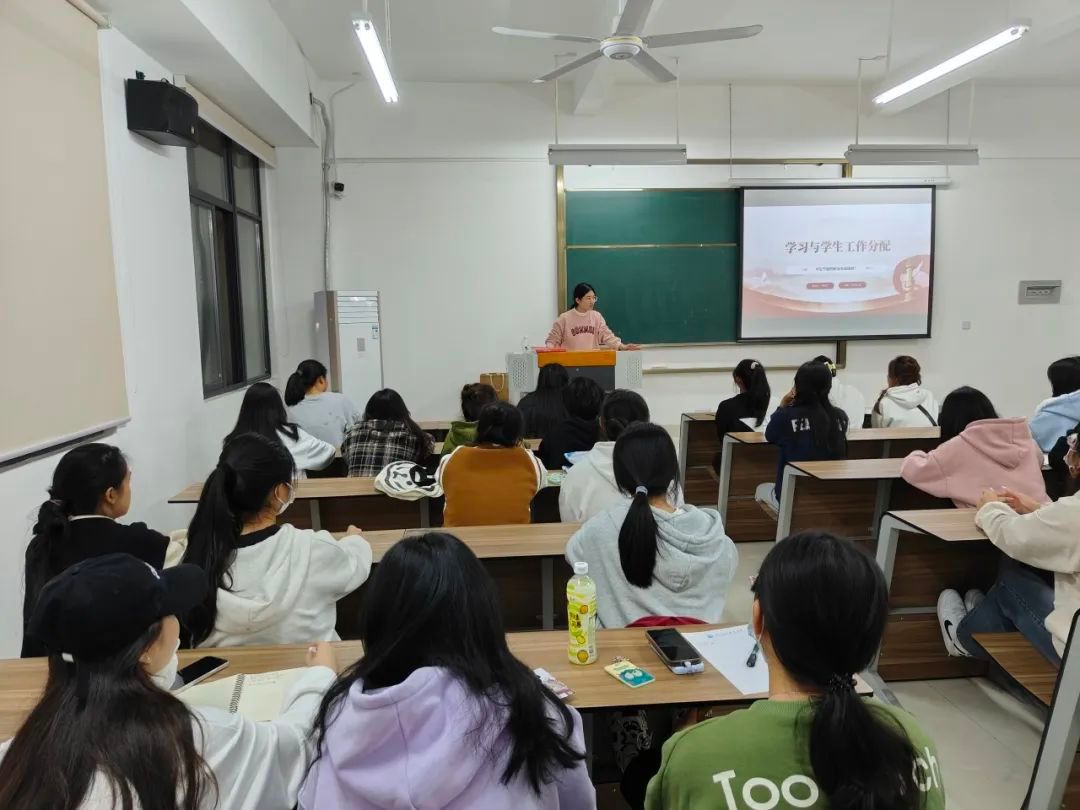 11月21日晚,林铭玲老师为学生分析学习与学生工作分配的问题。从学生干部是什么、为何做学生干部、怎样做学生干部三方面入手讲解。