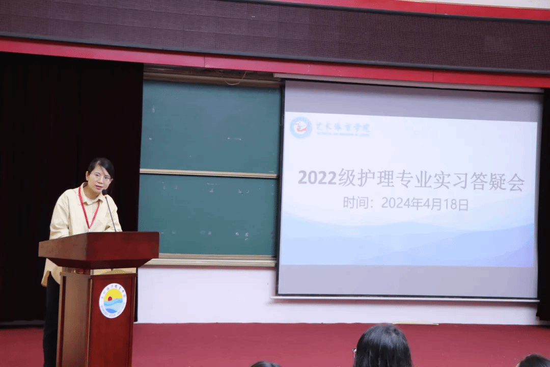 为帮助我院2022级护理学子更好地了解实习内容及实习单位情况,及时调适实习前状态并岗位实践准备。4月18日,我院于2204报告厅成功召开2022级护理实习答疑会。会议特邀我院护理专业负责人蓝玉樱老师担任主讲,护理专业李腾涛、李雨欣、彭春燕、罗淑玲、代紫薇、刘礼佳老师出席会议,2022级全体护理学子到场参加。