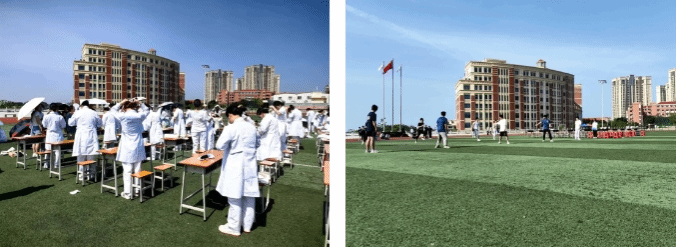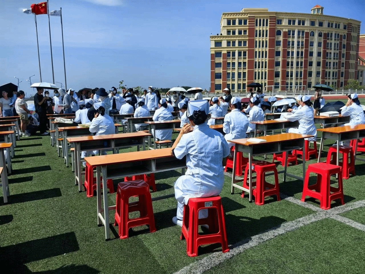 5月8日,2023级护理技能比赛初赛于校田径场举行。比赛内容为:女生组为个人赛,在限时1分钟内穿好自己的护士服、护士鞋、梳好头发,用头花包好后,佩戴燕尾帽。男生组为团队赛,四人一组参赛人员要求以模拟120急救指挥中心工作,由同学A(120指挥中心)→将救援信息传达给就近医院→同学B(医院)→将救援信息传达给急诊工作人员→同学C(医务工作者)组织救援后将患者转运送往医院。