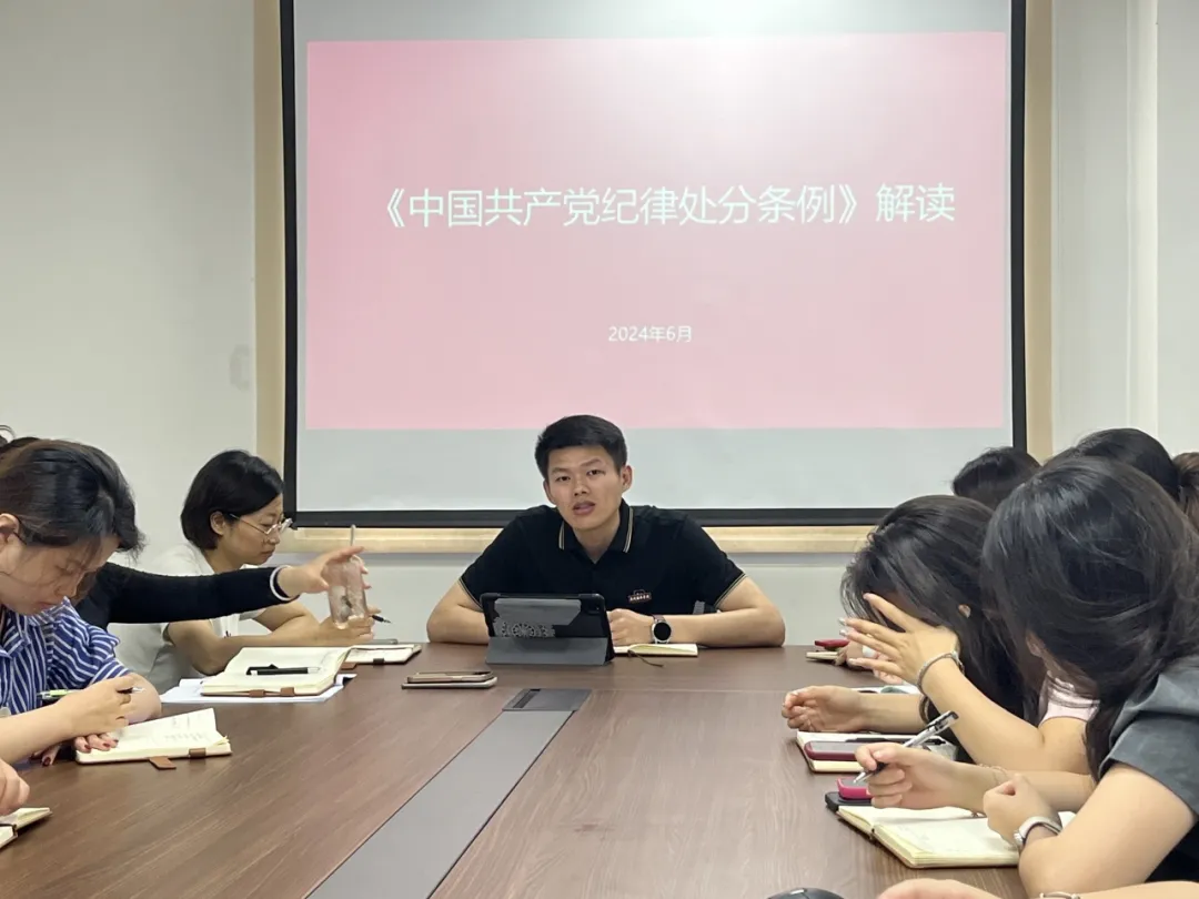 为进一步增强遵规守纪的思想自觉、政治自觉和行动自觉,推动党员深刻理解《中国共产党纪律处分条例》(以下简称《条例》),真正做到学纪、知纪、明纪、守纪,6月18日,学院党支部书记陈绍勇为辅导员队伍讲授党纪学习教育专题党课。