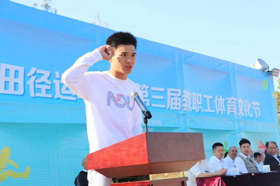 我院许贵堃老师作为裁判员代表宣誓,全体裁判员将秉持公平、公正、公开的原则,以高度的责任心和专业素养执行裁判任务。同时,他希望全体运动员严格遵守比赛纪律,发扬坚韧顽强、拼搏进取的体育精神,以最佳的状态投入到比赛中去,赛出成绩、赛出水平、赛出风格。