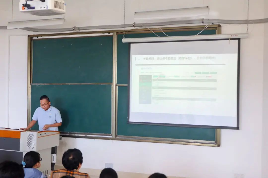 会议最后,数智化管理处陈志雄老师对学院全体教职工进行教学平台使用培训,帮助大家更好地利用学校教学平台,提高课堂教学质量,进一步增强我院教职工对智慧教育理念和教学创新的认识。