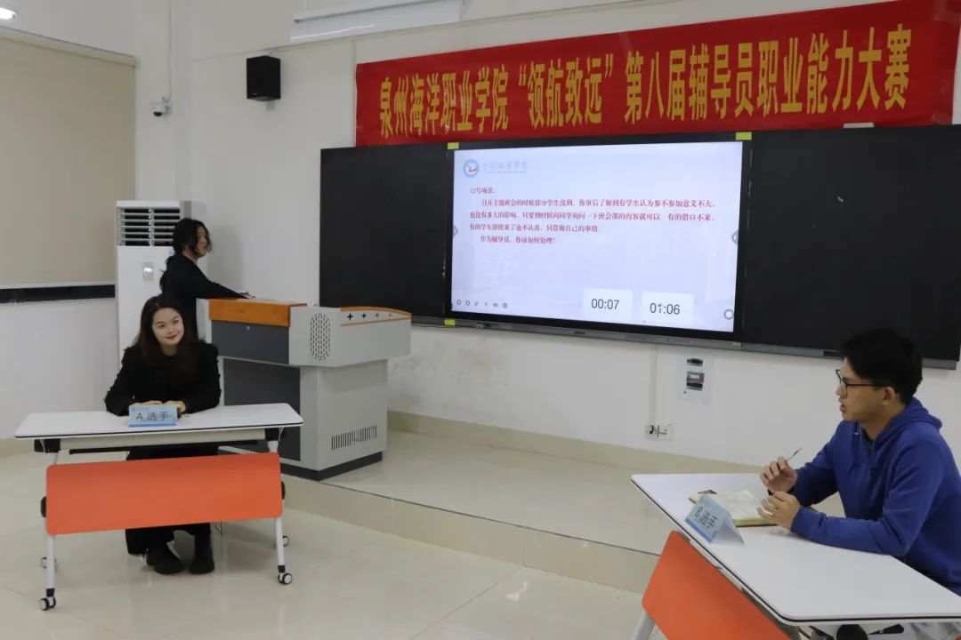 比赛过程中,各位辅导员老师针对所抽到的题目进行全面透彻的问题分析,在互相提问和个人阐述中,共同剖析案例问题、探索解决之道、研究实施策略。针对案例抽丝剥茧,层层深入,展现出良好的现场应变和逻辑思辨能力。在现场紧迫的时间和氛围中,一对一分别辨析案例缘由、梳理难题风险点、提供解决思路、总结规律启示,达到以赛带练、以赛代训、以赛促学的赛事要求。