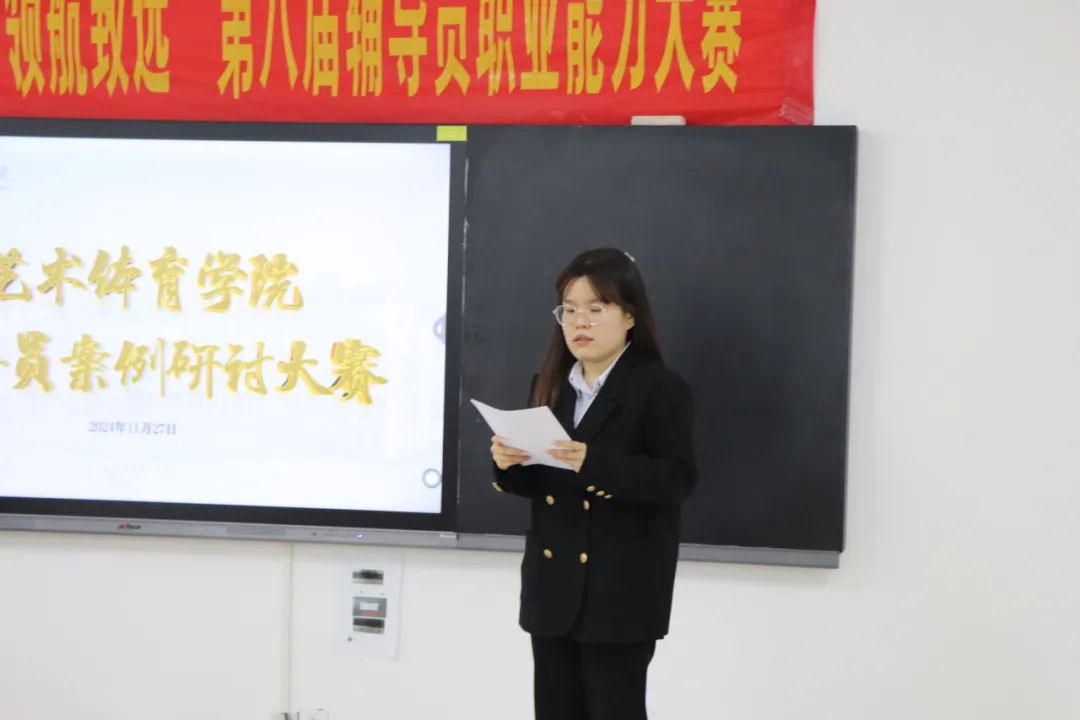 11月27日下午,我院于三号教学楼3504教室举办“‘领航致远’第八届辅导员职业能力大赛”第二阶段案例研讨比赛。我院孙玉坤院长、党总支陈绍勇书记、公共体育教研室邬佳卫主任、表演与幼儿发展教研室张敏主任、表演与幼儿发展教研室刘顺老师,以及校党委学生工作部思政管理科副科长黄安娜老师出席并担任大赛评委。大赛由党总支副书记王珺镅主持。