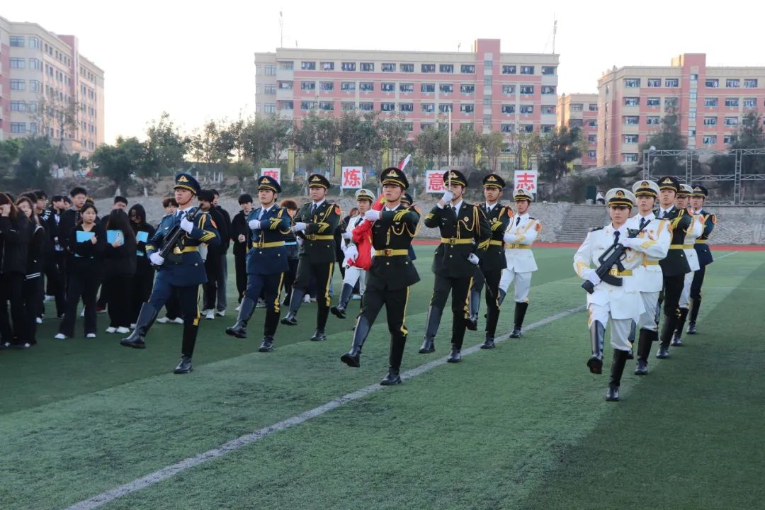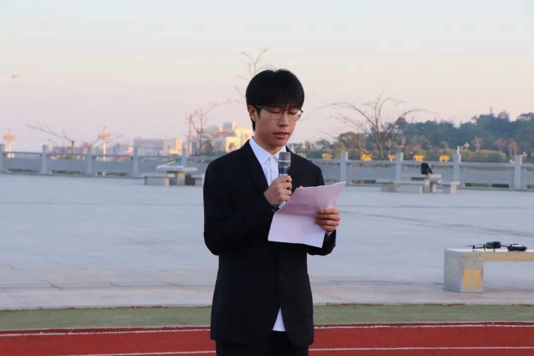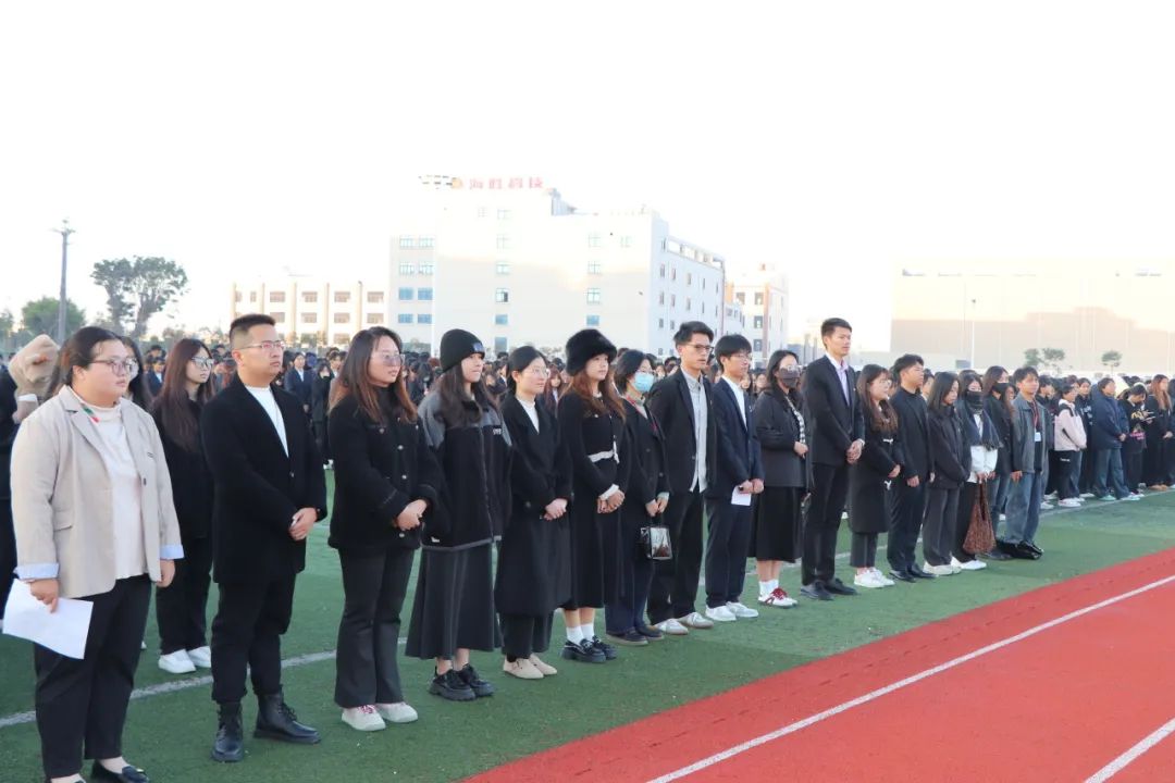 12月2日,艺术体育学院在校田径场开展“感恩·励志·奋进”主题升旗仪式,党总支书记陈绍勇、党总支副书记王珺镅、各专业班级辅导员和全体在校生到场参加。仪式由团委书记黄晨琛主持。