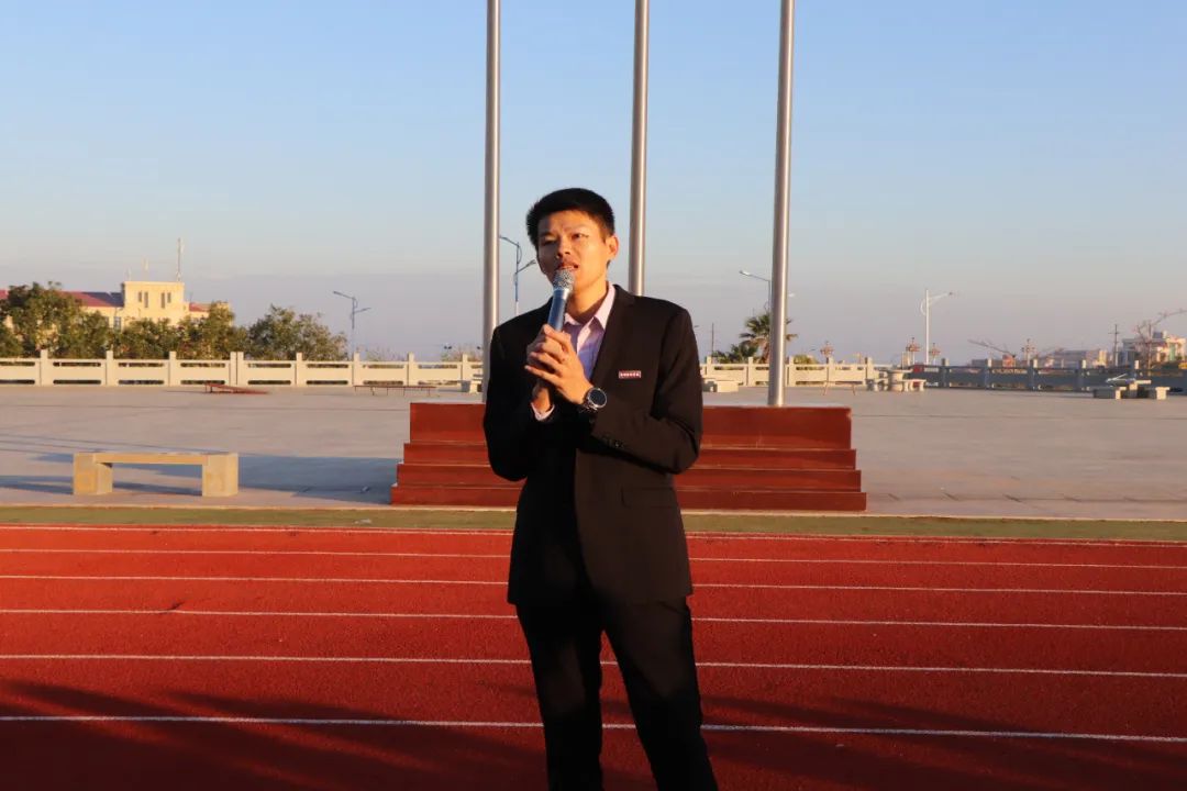 接着,由优秀学生代表姚子恒发表国旗下讲话,与大家共同探讨即将开展的“星级文明班级创建”活动。他对于如何打造星级班级提出几点建议:一是团结协作,共同进步。一个班级的团结协作是创建星级文明班级的基础,班级同学们应该要共同谋划,群起发力,共同为一个目标而不断奋斗。二是讲文明礼仪,弘扬传统美德。礼仪文明是人际交往的基本原则,是个人素质的体现,也是同学们应该学习和遵循的行为准则,所有同学应从自身做起,积极响应学院发布的《文明倡议》要求,做好自我约束与管理。三是创新实践,激发活力。星级文明班级,不仅是学习成绩的展示窗口,更是学生综合素质培养和创新能力提升的重要平台,所有同学应主动作为,奋勇争先,将个人发展与集体进步紧密结合,促进班级建设工作的高质量推进。四是真诚关爱,温暖人心。一个星级文明班级,不仅仅是学习成绩优异的班级,更是充满情感交流与人文关怀的温馨港湾,同学之间应相互帮助,相互进步,努力形成“比学赶帮超”的优良氛围。最后,他倡议同学们一起携手共进,用热情与努力,点燃星级文明班级的火焰,共创美好校园!