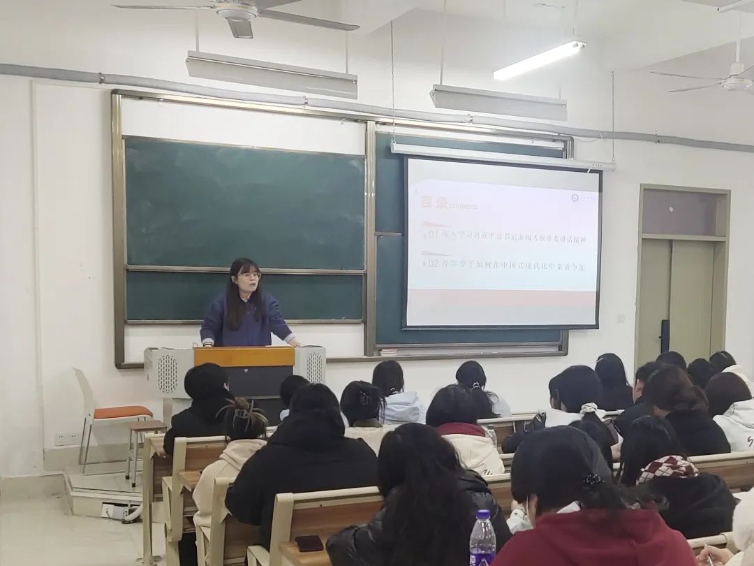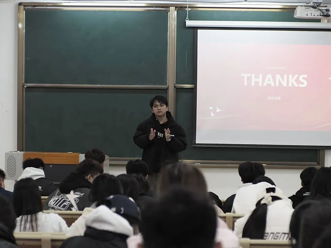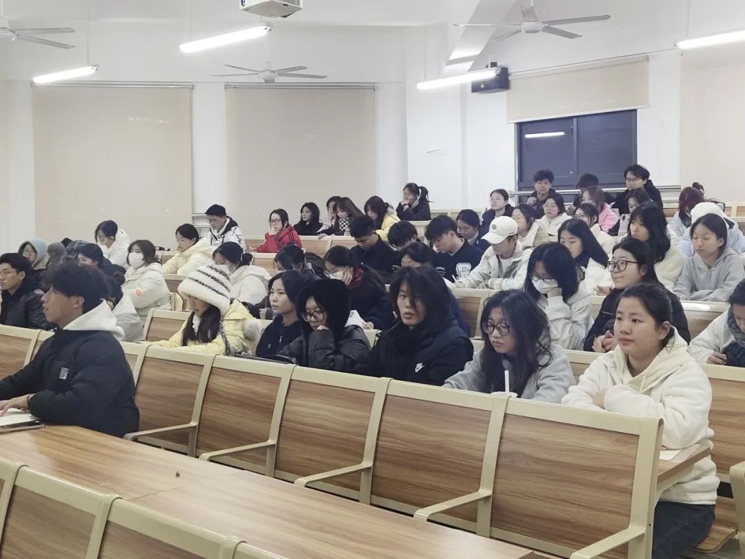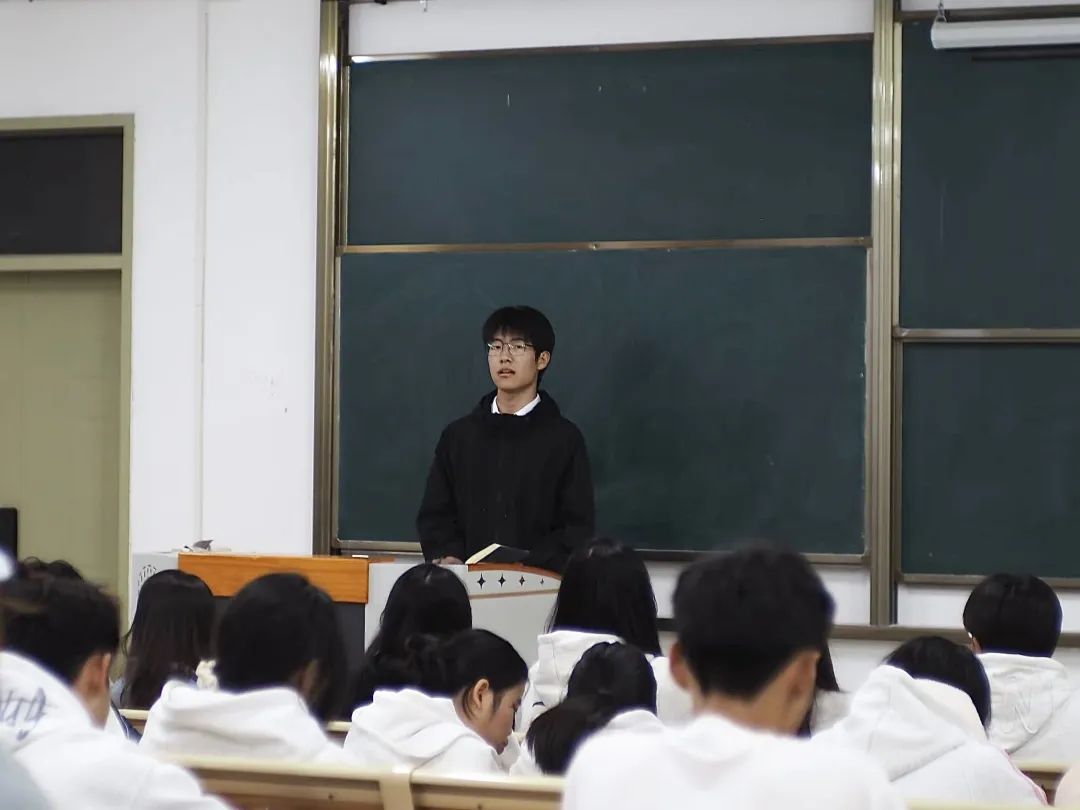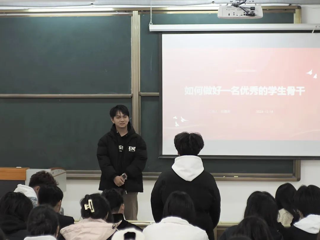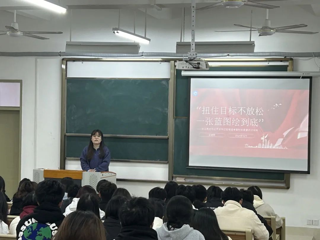 12月24号晚,党总支副书记王珺镅老师以“'扭住目标不放松,一张蓝图绘到底'——学习贯彻习近平总书记在福建考察时的重要讲话精神”为题开展了一堂生动精彩的理论党课。她强调,全体学生骨干要主动深入学习宣传贯彻习近平总书记的重要讲话精神,将习近平新时代中国特色社会主义思想内化于心、外化于行,使之成为开展各项工作的行动指南,并且要发扬“严、真、细、实、快”的工作作风,展示学生干部的良好形象,全心全意服务同学,搭建好学院师生之间的桥梁和纽带,为进一步推动学院建设添砖加瓦。。