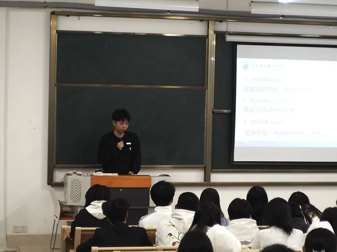 12月9日晚,我院辅导员潘成杰老师为各位学生骨干开展了关于“活动策划的撰写与活动方案的实施”的技能培训。潘成杰老师以“如何策划一场好活动”开展教学,从活动前期准备到后期实施,要掌握好沟通艺术和组织活动技巧,把握细节,统筹全面,注重反思。