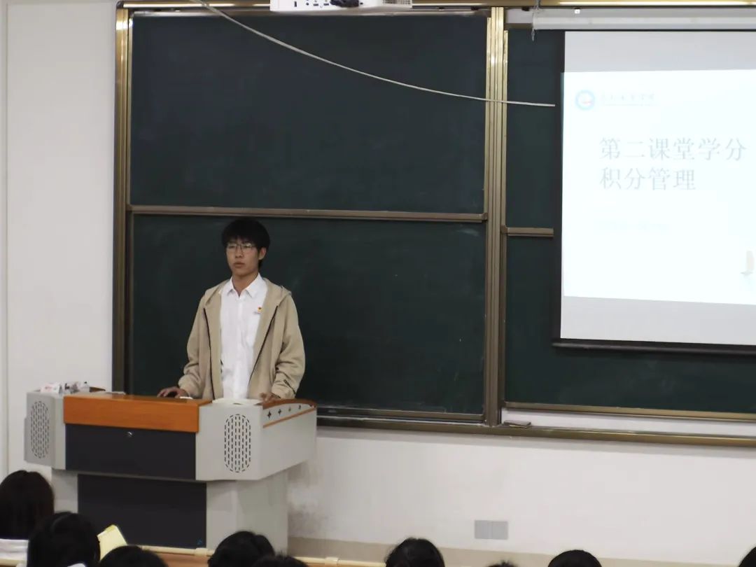 12月10日晚,学生兼职团委副书记林于欣、姚子恒两位同学分别就“团支部基础团务工作的开展”“提升团支部活力”“第二课堂积分学分管理制度解读”等主题进行技能培训,为同学们详细介绍了团务基础知识和第二课堂学分积分内容,要求各班级干部要贯彻传达,做好团支部建设和班级管理,增强班级活力,提升综合素质。