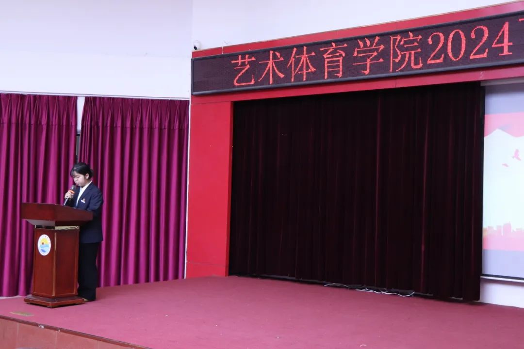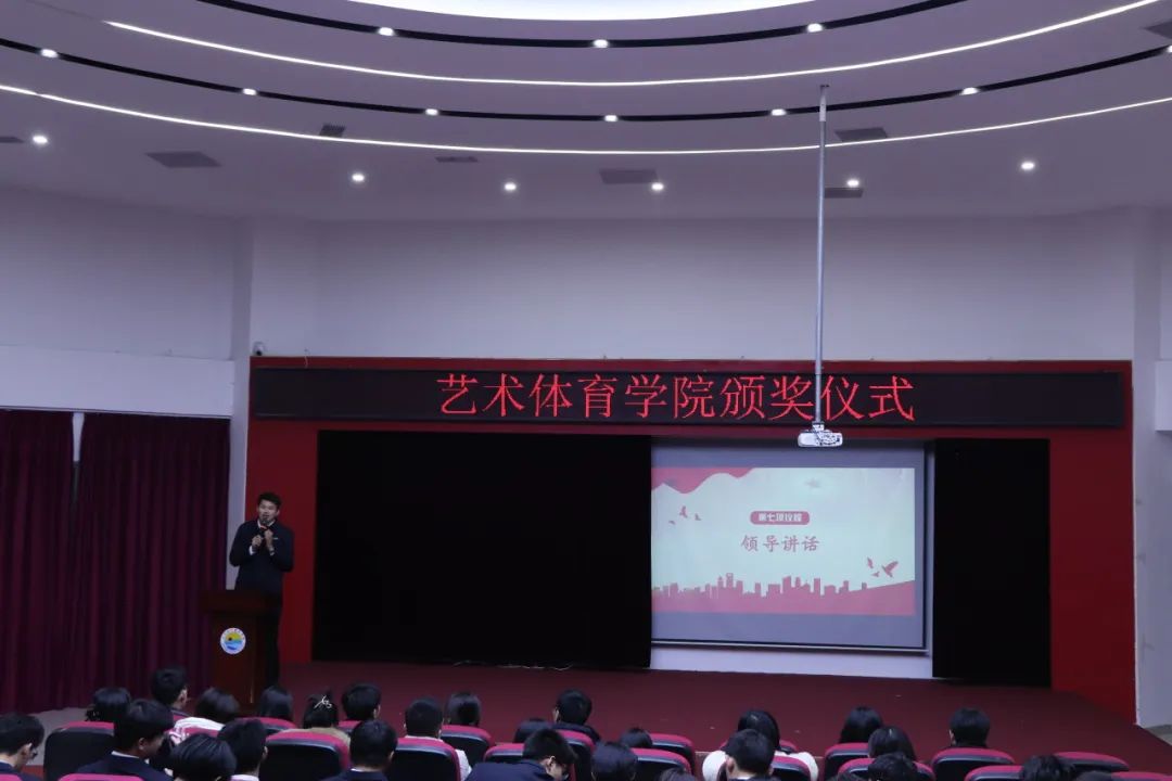 陈绍勇书记首先对获得荣誉的个人和集体表示祝贺,并对一年来为各类赛事的策划实施提供服务保障的师生表示感谢。他勉励与会同学:一、抓住机遇,勇于尝试和表现自己;二、珍惜荣誉,团结协作争取更大成功;三、继续前行,敢为人先又善作善成,在学院推进“四个艺体”建设的实践中作出新的更大贡献。