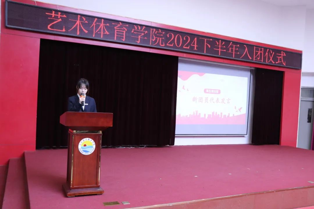 婴幼儿托育服务与管理232班陈珊珊同学作为新团员代表发言,她认为共青团员肩负着责任与使命,呼吁同学们要以良好的言行来展示共青团员的风采,还要通过实践不断提升自身素质和能力,更要树立正确人生观,世界观,价值观。最后她希望新团员们在今后的日子里,能始终牢记自己是一名共青团员,不断努力,不断进步,取得更加辉煌的成绩。