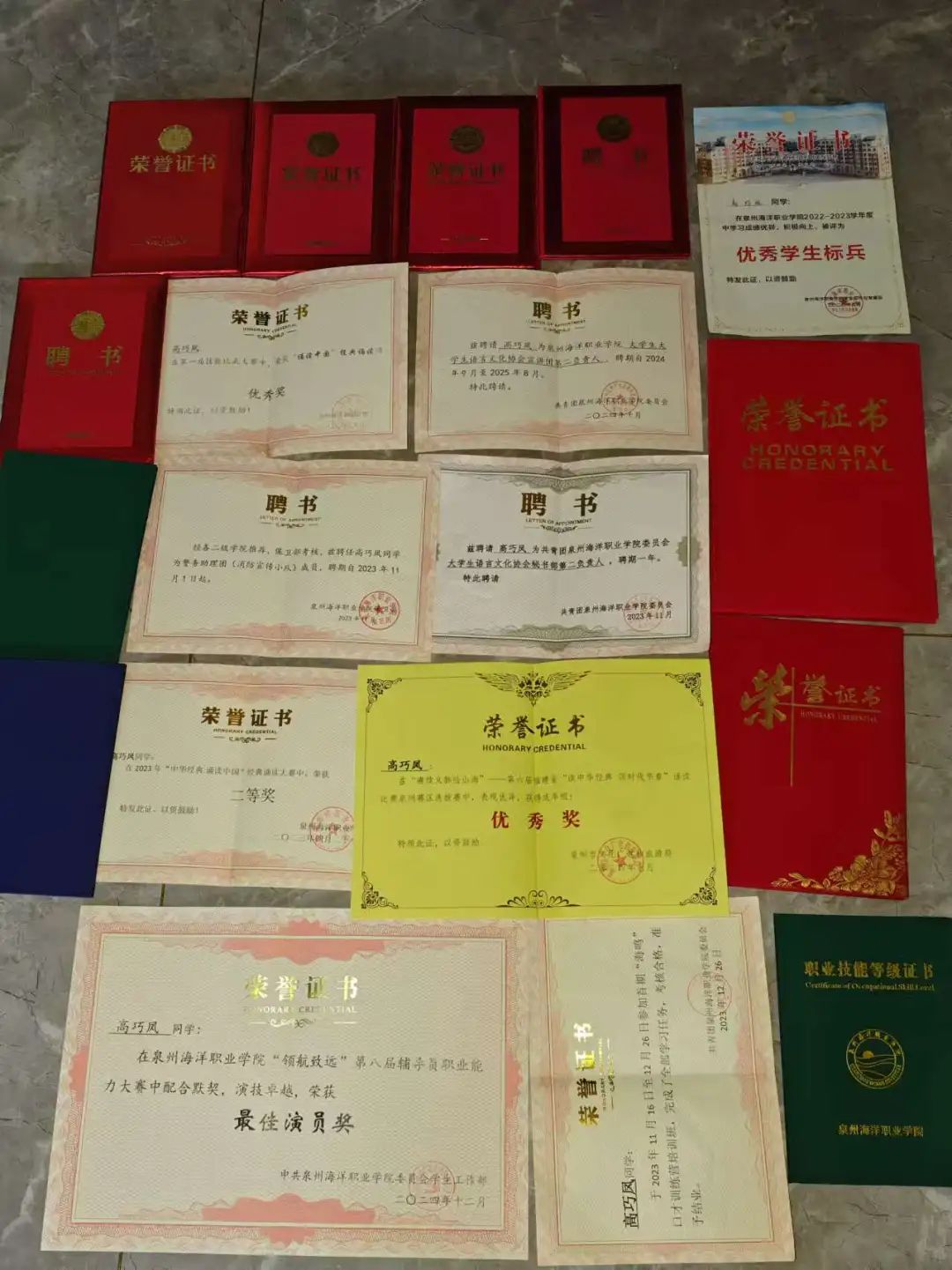8.2022—2023学年泉州海洋职业学院“中华经典,诵读中国”二等奖。