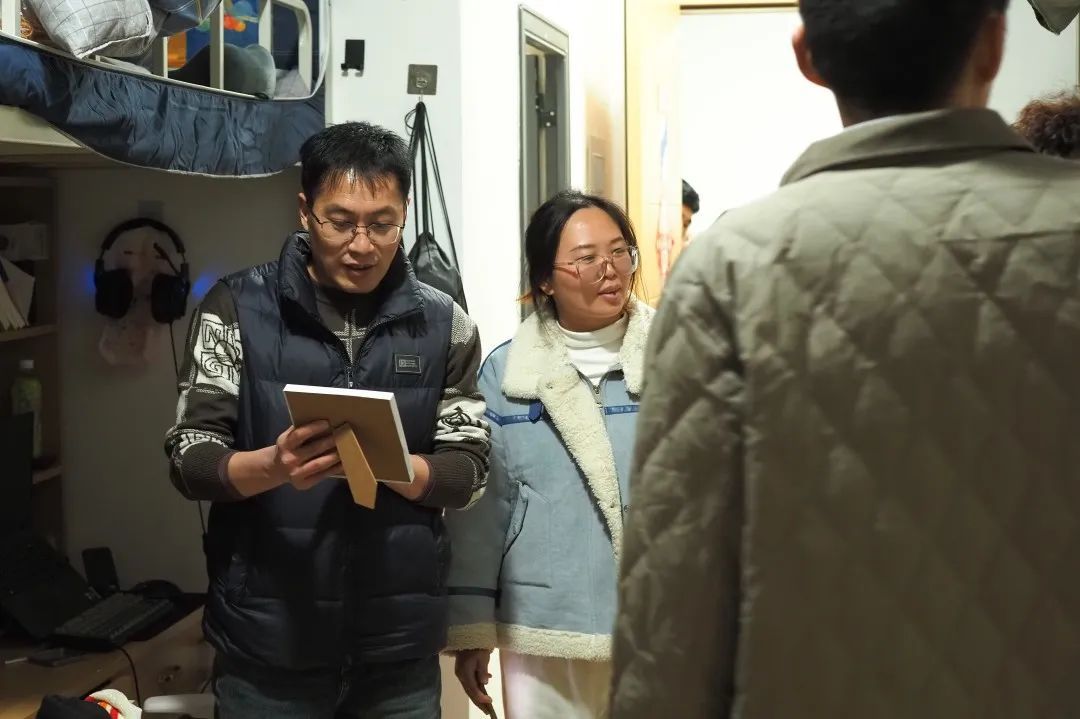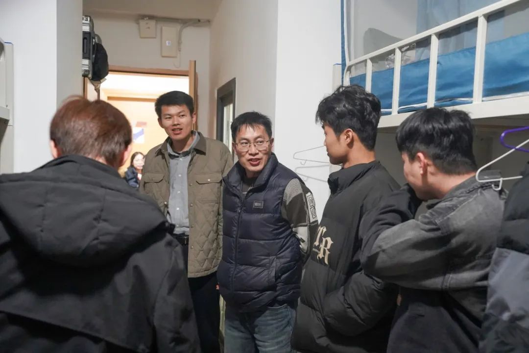 2月17日晚,我院院长孙玉坤、党总支书记陈绍勇、副书记王珺镅带领全体辅导员深入学生宿舍走访慰问,了解同学们寒假生活及新学期学习动态,送上关怀和祝福。