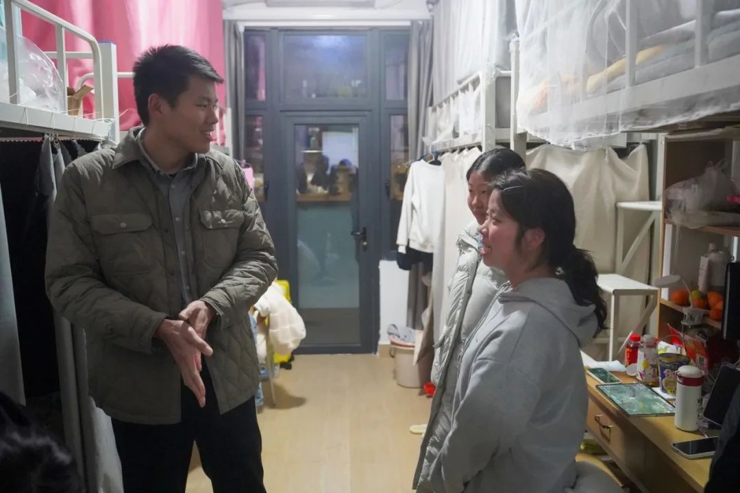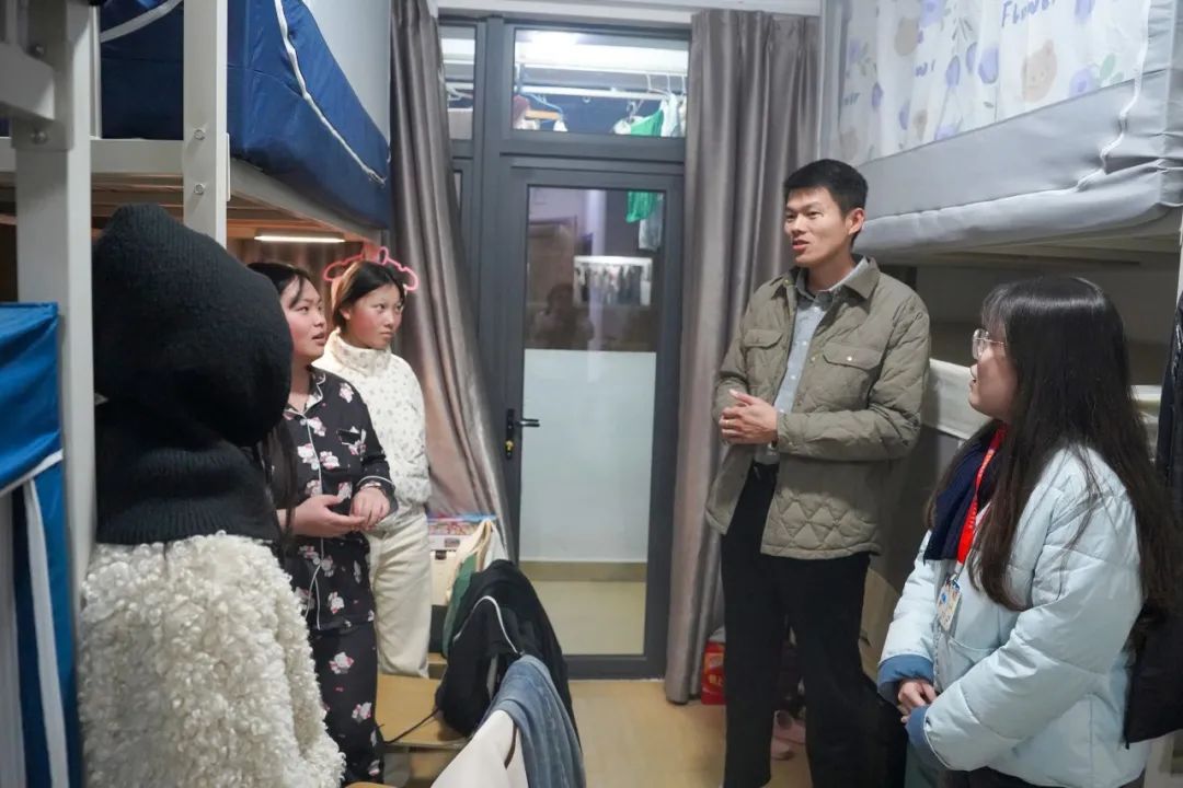 走访过程中,学院领导、老师们与同学们亲切交谈,关心同学们的假期学习、生活和身心健康情况,氛围轻松融洽。同时,老师们深入了解了学生宿舍设施环境是否安全卫生、整洁舒适,叮嘱同学们注意天气变化,保持健康饮食,积极锻炼身体,调整作息习惯,以饱满的精神状态迎接新学期。