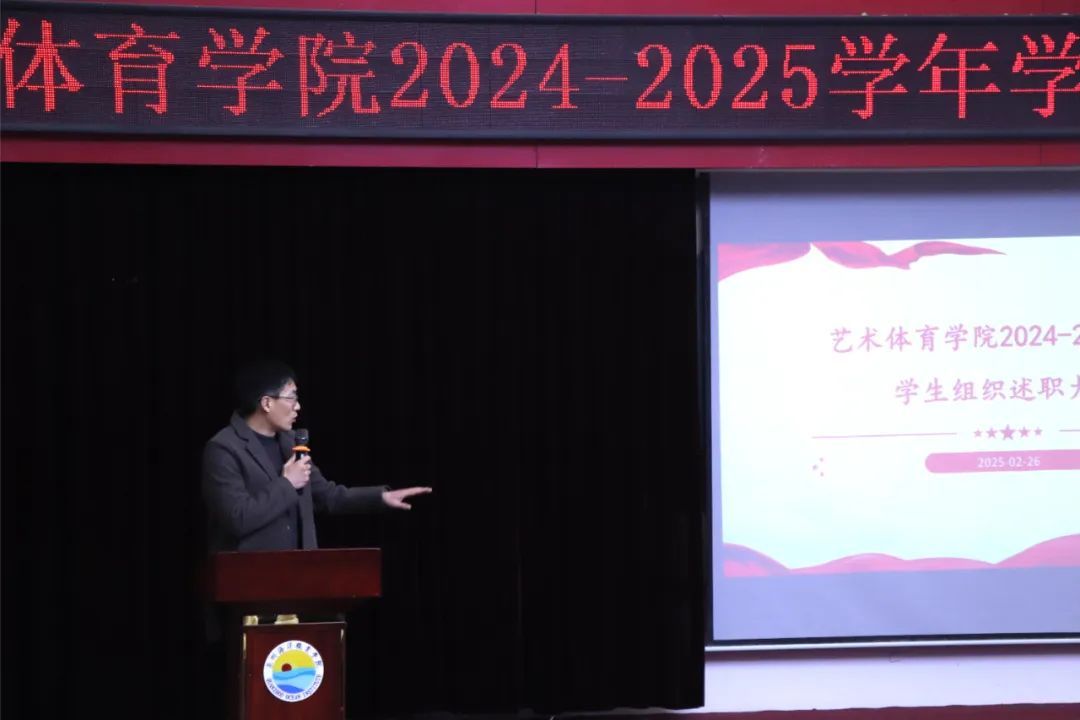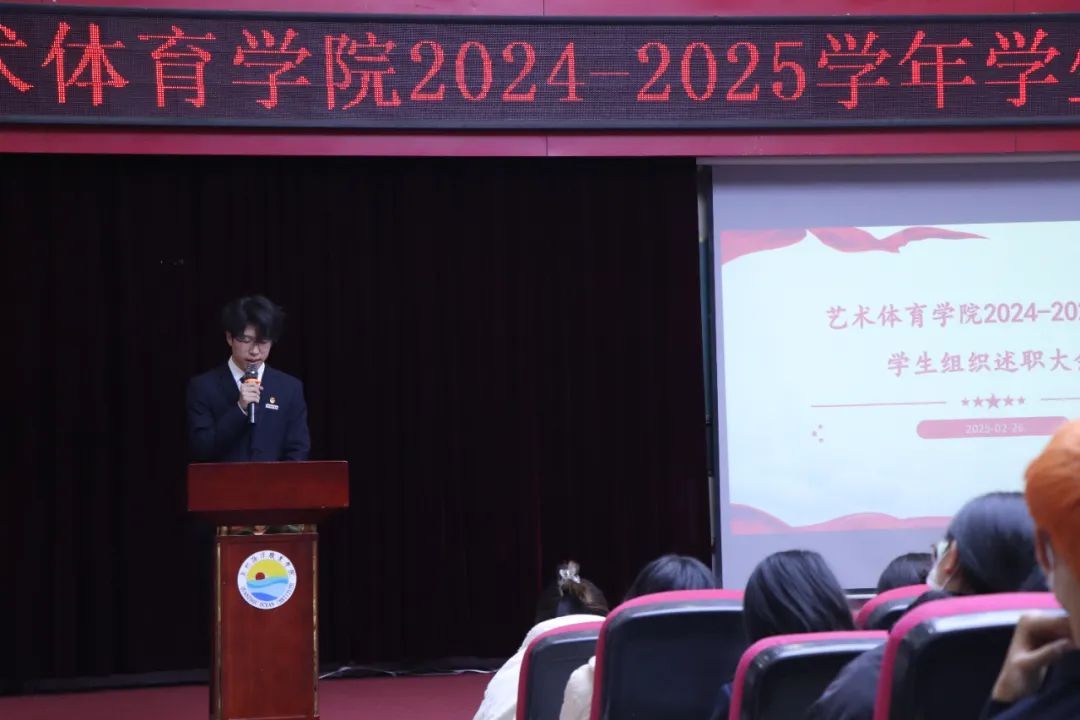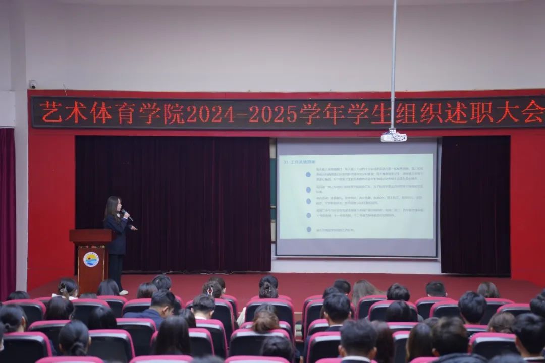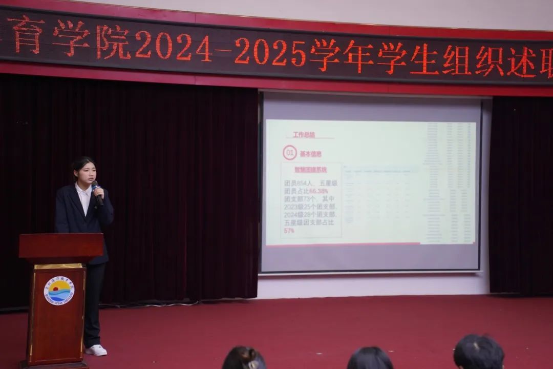 各部门组织负责人聚焦工作履职情况、现存不足及未来工作规划等内容依次上台进行述职汇报,他们通过清晰的逻辑架构和详实的数据支撑,深入分析了重点工作的推进过程、成果亮点以及不足之处,明确改进措施,并精准锚定新学期的工作目标与方向,努力提高工作效率和质量,为学院团学工作的持续优化与发展注入新的动力。