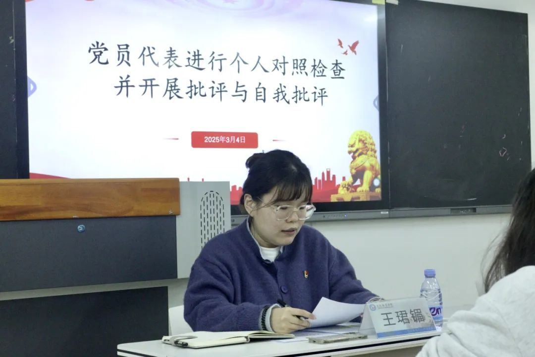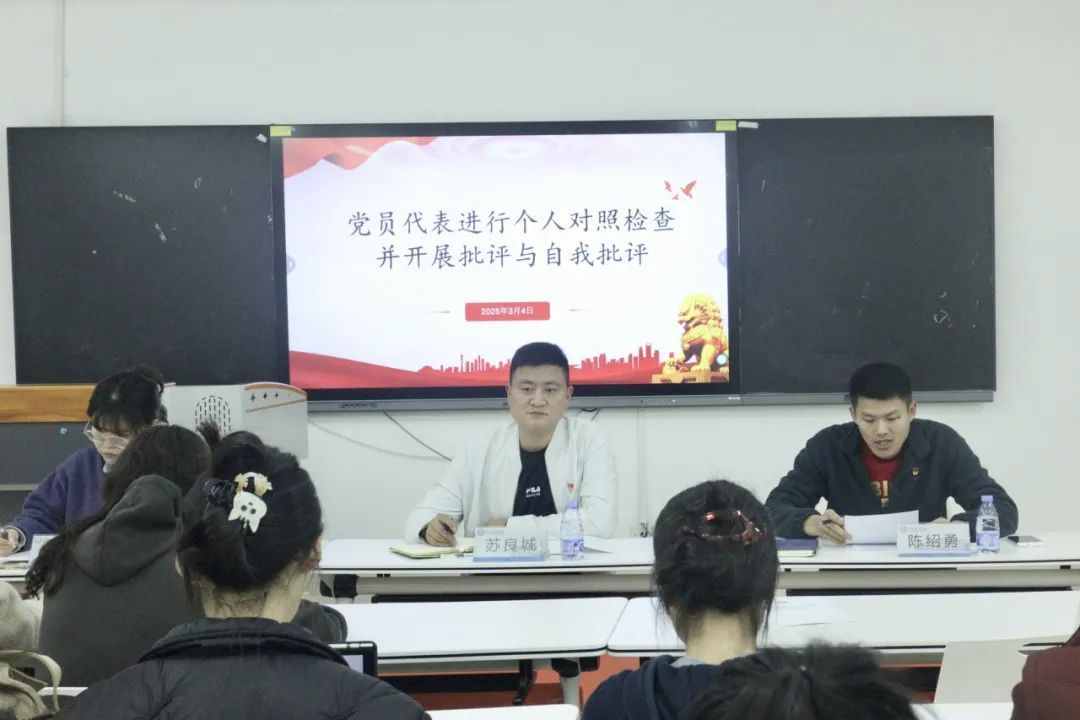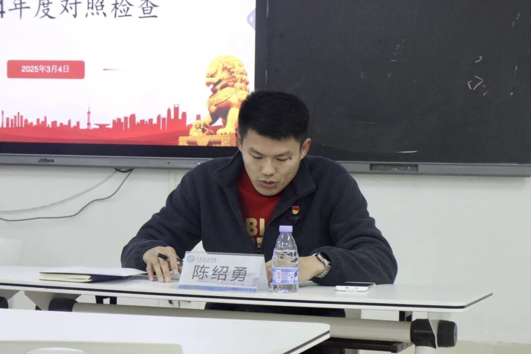 会上,组织委员陈钰倩通报了2024年度组织生活会准备工作情况,王珺镅副书记汇报2023年度组织生活会查摆问题整改方案落实情况。陈绍勇书记代表支委班子作对照检查并带头作个人对照检查发言,深度剖析找差距,明确下一步整改措施和方向。随后,其他支部委员依次进行发言,紧扣思想、工作、学习等方面,对照四个方面严肃认真开展批评和自我批评。与会党员实事求是,客观公正开展党员民主评议。