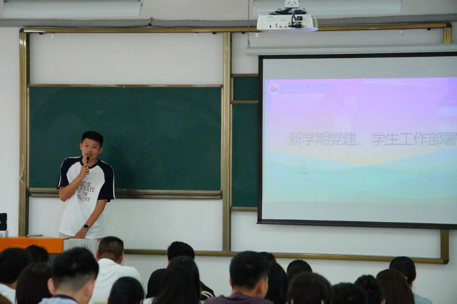 党总支书记陈绍勇对新学期党建、学生管理及迎新工作等进行具体部署,他还就学生实习就业及安全等工作内容提出具体要求,希望各实习指导老师、学业导师及辅导员加强沟通,加强学生学涯规划和职业发展指导,强化责任意识,担当作为。他还就相关工作纪律和管理文件作了强调,要求与会人员再学习、再强化,对标对表履职尽责,全面提升育人实效。