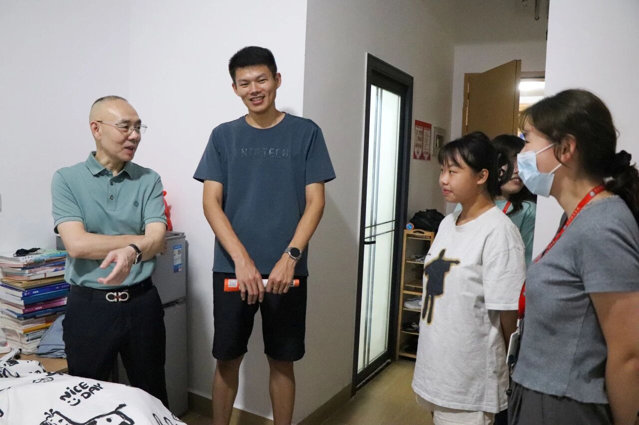 宿舍里,领导与老师们卸下“身份”,笑语盈盈,关切地询问同学们的暑期生活。从“在家乡参与的社会实践有哪些难忘瞬间”,到“专业学习中是否有了新思考”,再到“假期培养的兴趣爱好有没有新进展”,句句问候传递温情。同学们主动分享,有人谈及暑期社会实践收获的经验,有人分享假期学习的收获,并积极展示了自主学习的成果。领导与老师们认真倾听每一段分享,耐心鼓励并给予实践建议,传达殷切期望。