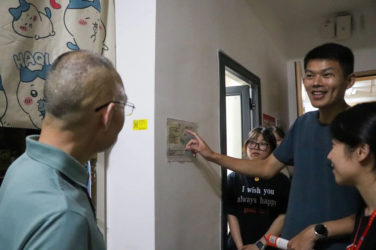 除了暖心交流,安全与细节同样被放在心上。老师们询问同学们到校后的住宿体验和适应情况,细致查看宿舍的水电线路、生活设施等是否存在安全隐患,叮嘱同学们用电安全,保持卫生整洁,遇到问题及时寻求辅导员和学院帮助。“刚返校可能还没调整过来,记得早点作息,尽快适应校园节奏,新学期才能更有劲头!”一句句贴心叮嘱,既是对同学们生活的牵挂,更是对新学期安全的守护。