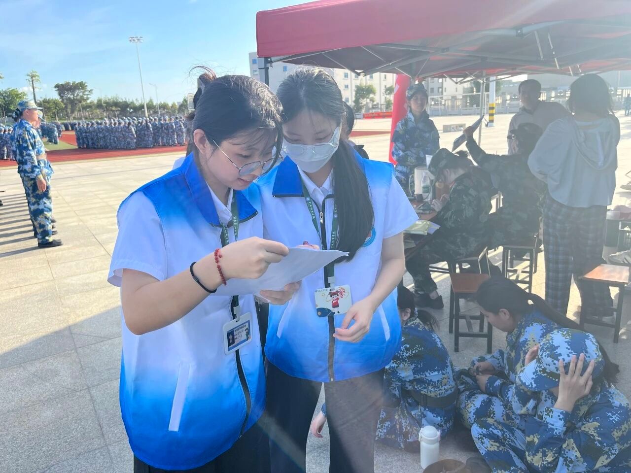 在烈日炙烤的训练场,除了挥汗如雨的新生,还有一群默默奉献的志愿者团队做着后勤与保障,为军训工作有序开展保驾护航。