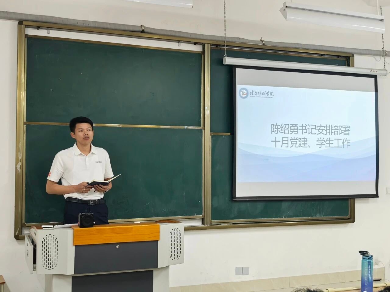 陈绍勇书记围绕党建与学生管理工作作出部署。重点明确五项任务:一是强化就业提质举措,提前推进实习就业精准转化对接;二是严格学生日常管理,专任教师与辅导员要做好双向联动,提高课堂考勤和管理质量;三是加快专业社团建设步伐,丰富实践育人载体;四是密切关注学生心理健康状况和师德师风建设,强化网络舆情监测引导;五是统筹推进学生赛事筹备与党建工作调整优化,确保各项工作有序推进。