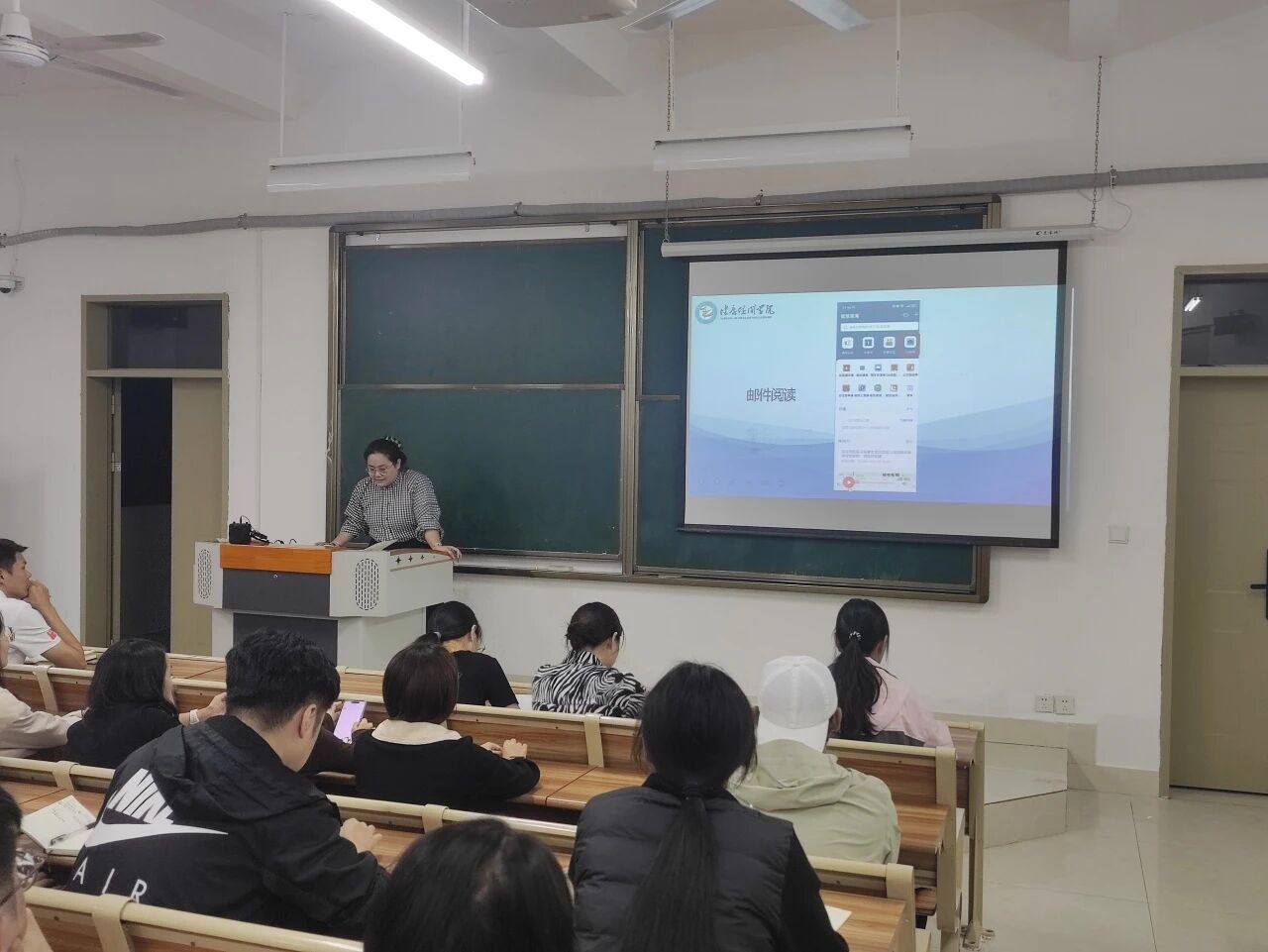 会上,办公室陈钰倩副主任聚焦 “智慧泉海”平台使用规范开展专题培训。她通过录屏演示,详细讲解了OA邮件阅读状态核查、文件转发等实操流程,并明确平台使用考核要求,提醒全体教职工严格遵守使用规范。