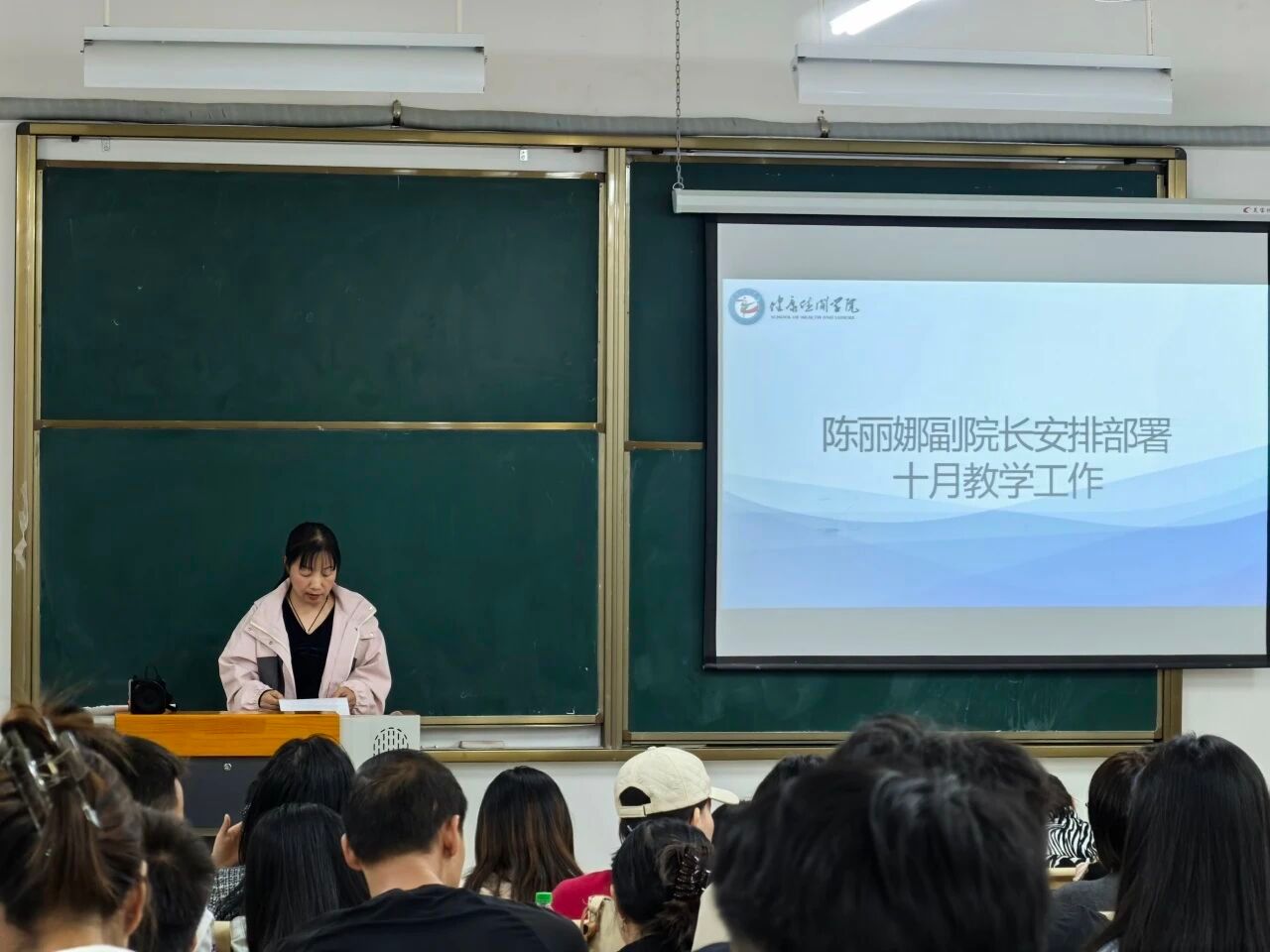 陈丽娜副院长对近期教学工作做出安排部署。会议通报学院教学专项检查结果,指出当前存在课程标准模板执行不规范、评学评教工作推进滞后、教学平台资源建设不足等突出问题。针对上述问题,陈丽娜副院长提出相应整改要求:限期完成课程标准修订完善,按时上传教案课件等教学资料,严格落实听课评课制度。同时部署说课展示活动与技能竞赛指导工作,并对教师在近期竞赛活动中的获奖情况进行表扬祝贺。