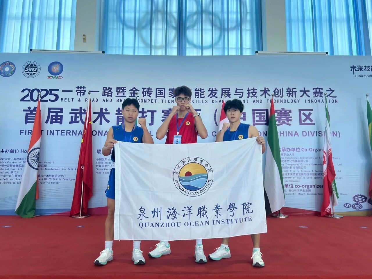 近日,2025年“一带一路”暨金砖国家技能发展与技术创新大赛之首届武术散打赛项在山东威海隆重闭幕。学校代表队首次参赛,在我院黄育雄、林文鑫两位老师的带领下,3名队员斩获二等奖1项、三等奖2项的佳绩。