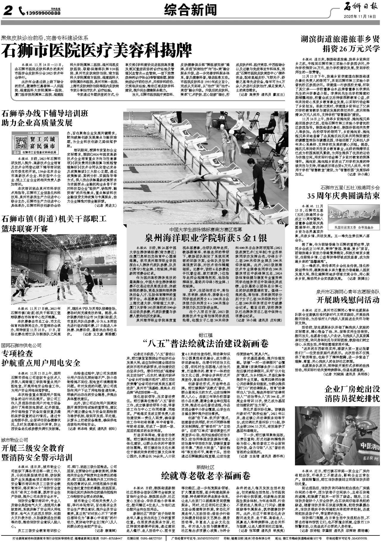 日前,第24届中国大学生游泳锦标赛(南方赛区)在厦门奥林匹克体育中心圆满落幕。我市泉州海洋职业学院派出6人游泳代表队参赛,队员们勇夺5枚金牌、1枚银牌,并刷新两项赛会纪录。