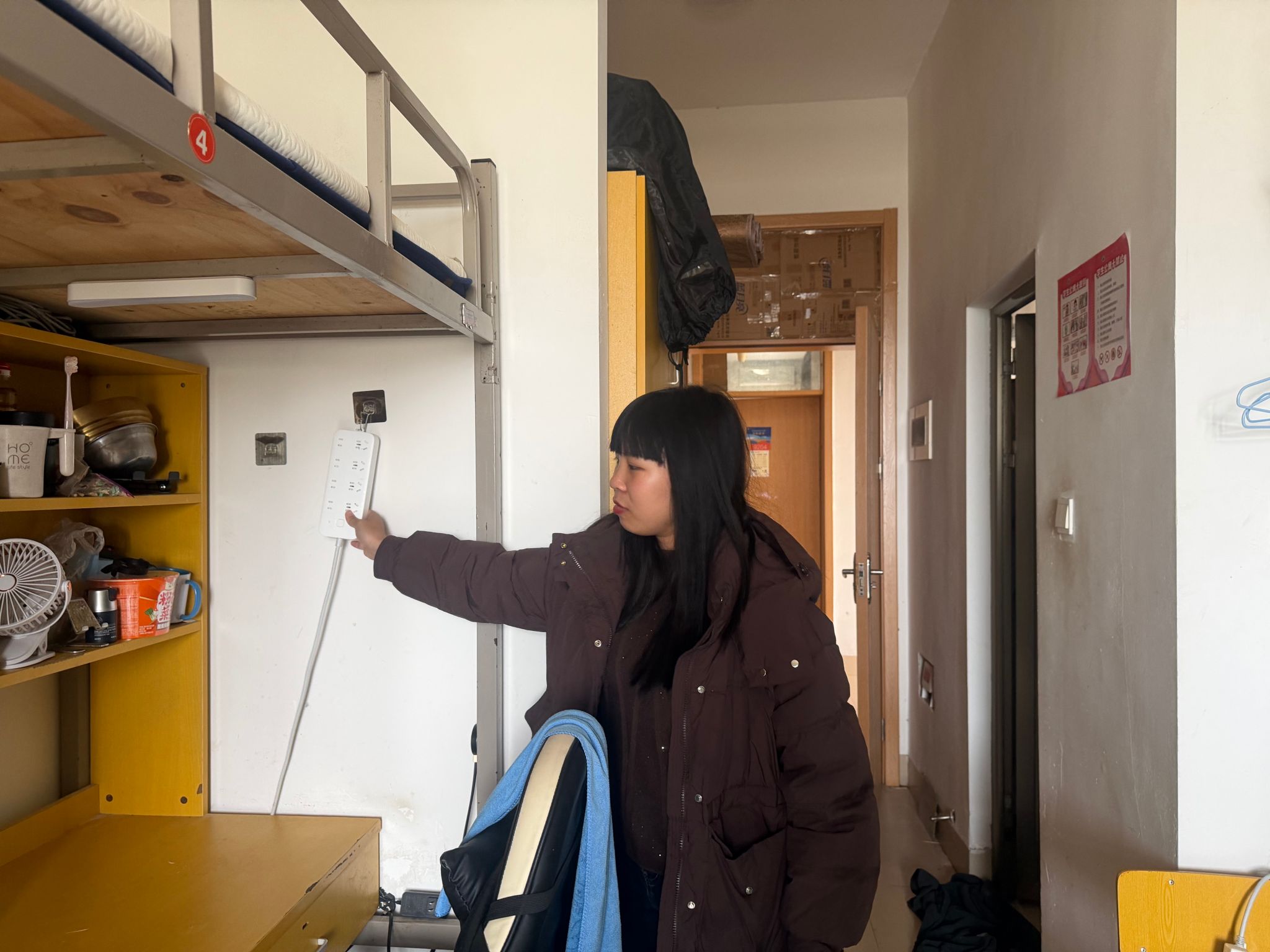 本次排查严格遵循“全面排查、立行立改、消除隐患”原则,聚焦学生社区安全核心问题,重点检查宿舍水电设施是否完好可用、消防设施是否正常有效、是否存在违规电器、是否存放易燃易爆物品等关键安全事项。 排查过程中,辅导员逐间走访、细致核查,对水电接口、消防设备、卫生角落进行全面检查,认真记录发现的问题并及时对接报修,坚决杜绝安全隐患。同时,全面清查违规电器、私拉乱接电线等危险行为,压实宿舍安全管理责任,全力守护学生住宿安全。