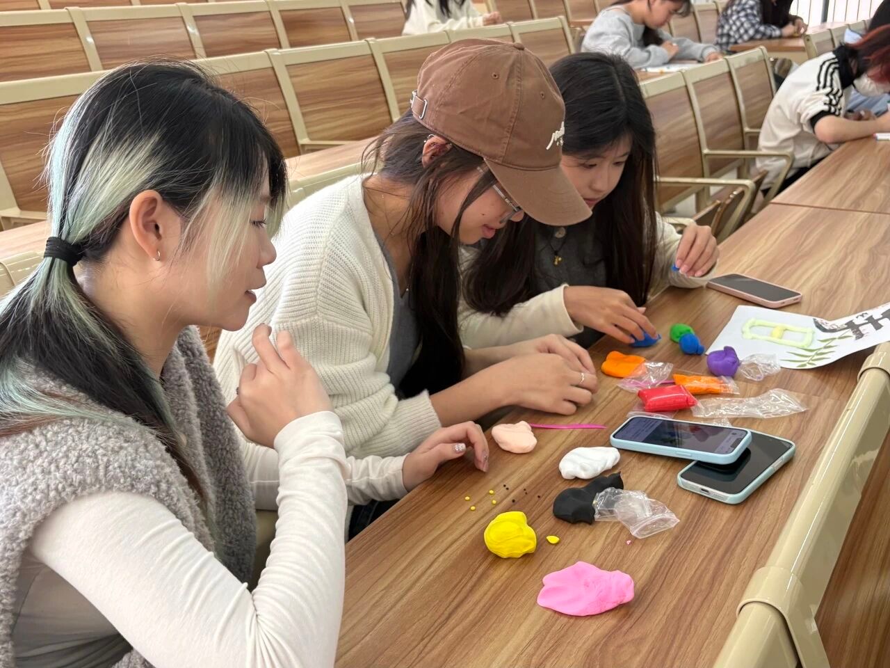 另一侧的黏土创作区同样热闹非凡,同学们指尖翻飞、巧思绽放,沉浸式投入创作之中。大家充分发挥想象力与创造力,揉、捏、搓、粘,一个个精巧灵动的黏土造型跃然掌心。在亲手创作的过程中,同学们真切感悟清明节气“慎终追远、生生不息”的传统韵味,感受春日万物复苏的蓬勃生机,将这份独属于清明的雅趣与美好,定格在指尖、珍藏在心底。
