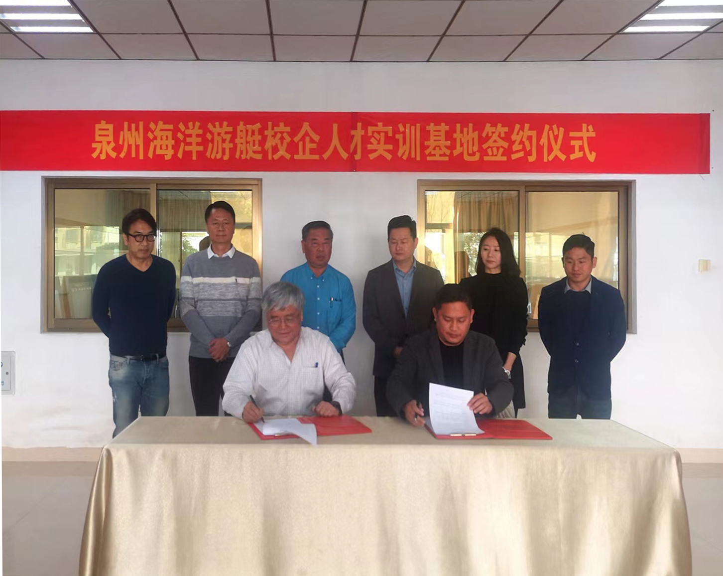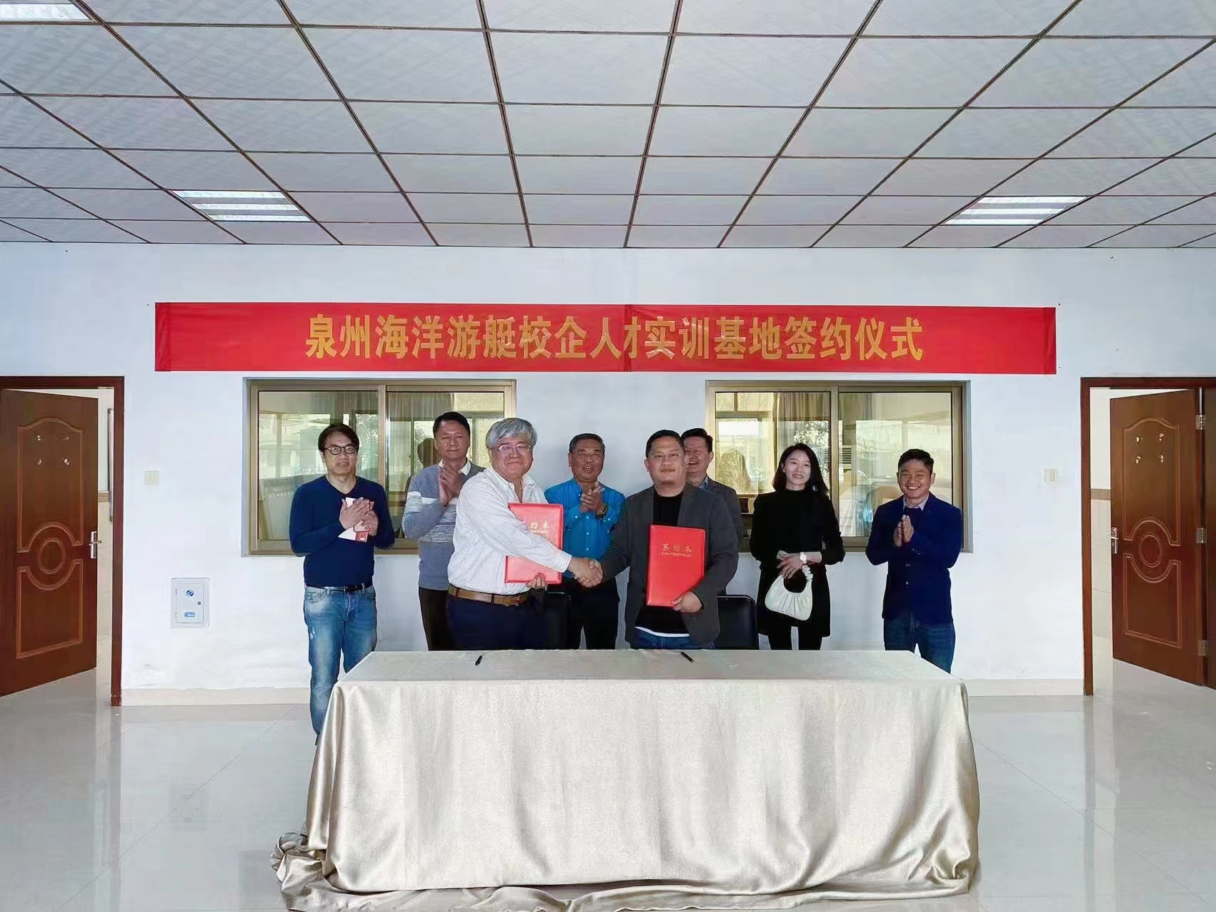 2023年2月28日上午,在厦门游艇行业协会留典芳会长的见证下,泉州海洋职业学院与哈德森游艇有限公司在哈德森游艇有限公司办公大楼完成了“校企人才实训基地合作协议”签约仪式。