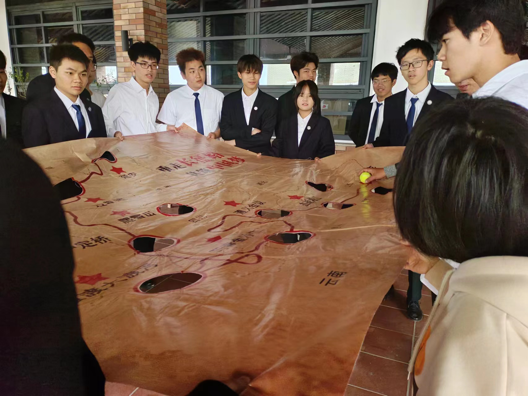 中段环节是由从事团建设计的专业人士带领学生们开展团建活动。学生参与其中的每一个环节,通过亲身体验,在玩乐中学习如何设计一个具有互动性、趣味性的团建活动以及如何营造休闲、娱乐的氛围。