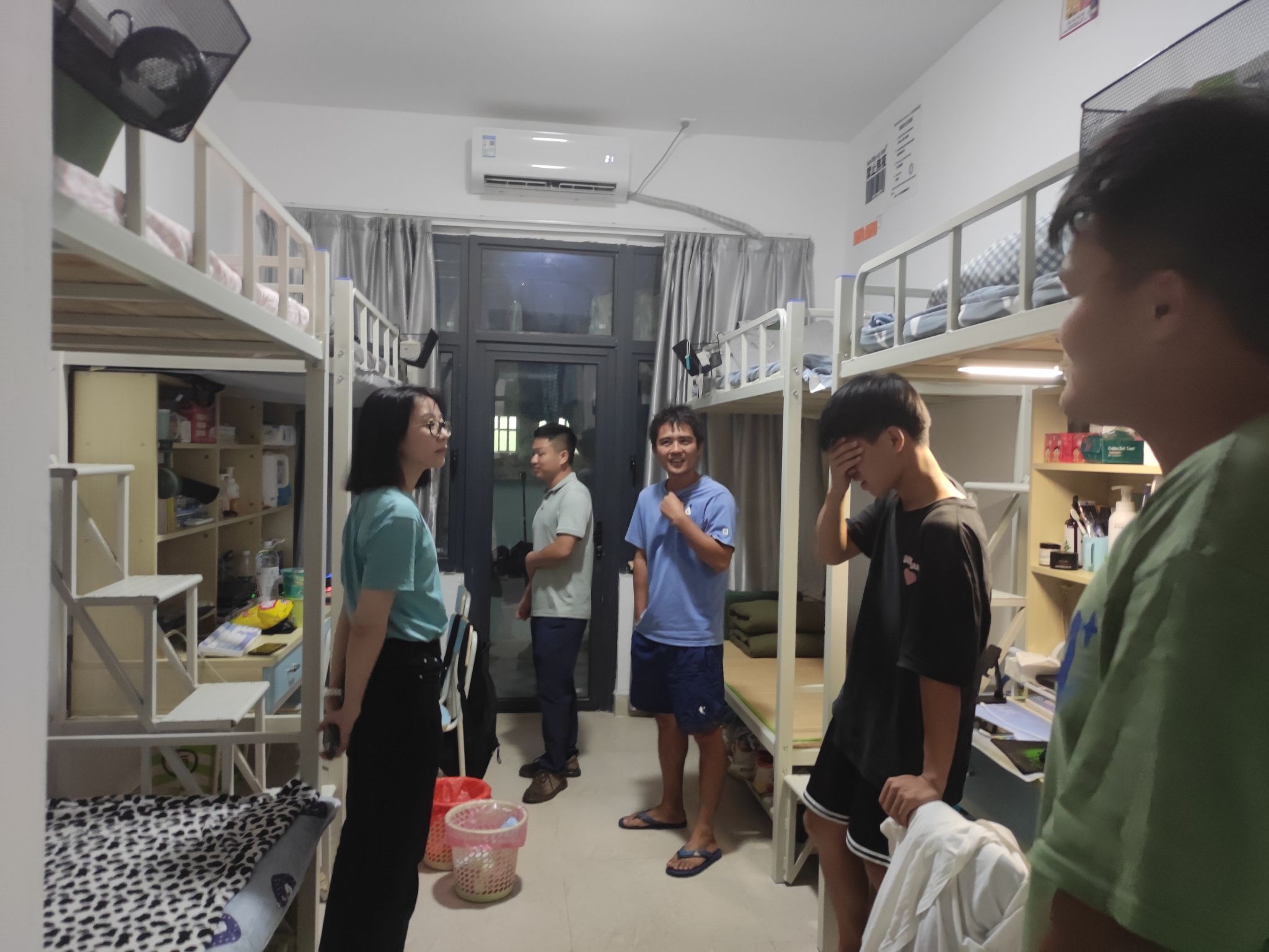 晚间,游艇帆船学院全体教职员工来到学生宿舍进行走访,检查宿舍里的卫生情况,排查宿舍里可能存在的安全隐患,并与学生们亲切交谈,询问学生们新学期宿舍生活问题、学习状态,了解他们在生活或学习上存在的问题或困扰,以便及时提供帮助和支持。