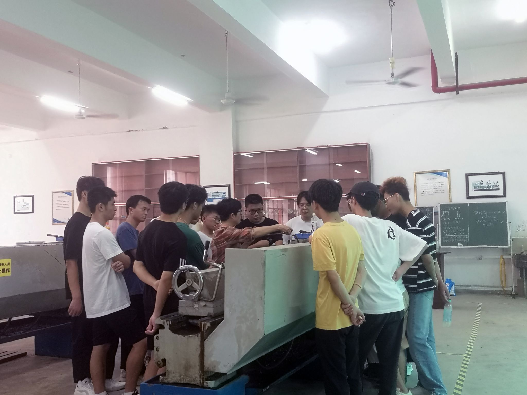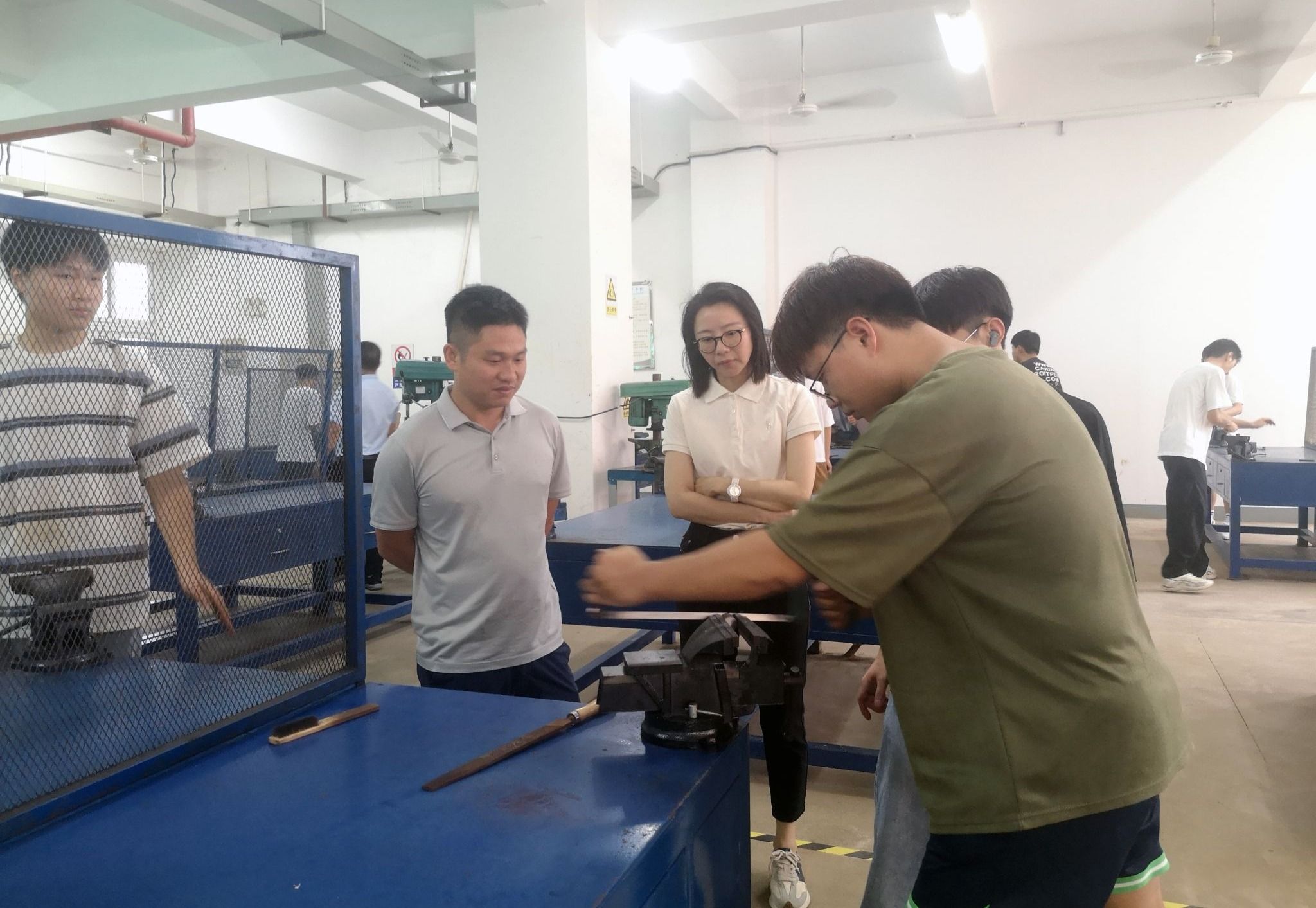 而另一边游艇设计与制造专业的学生们正在实训中心认真投入、全神贯注地学习着实践技能。