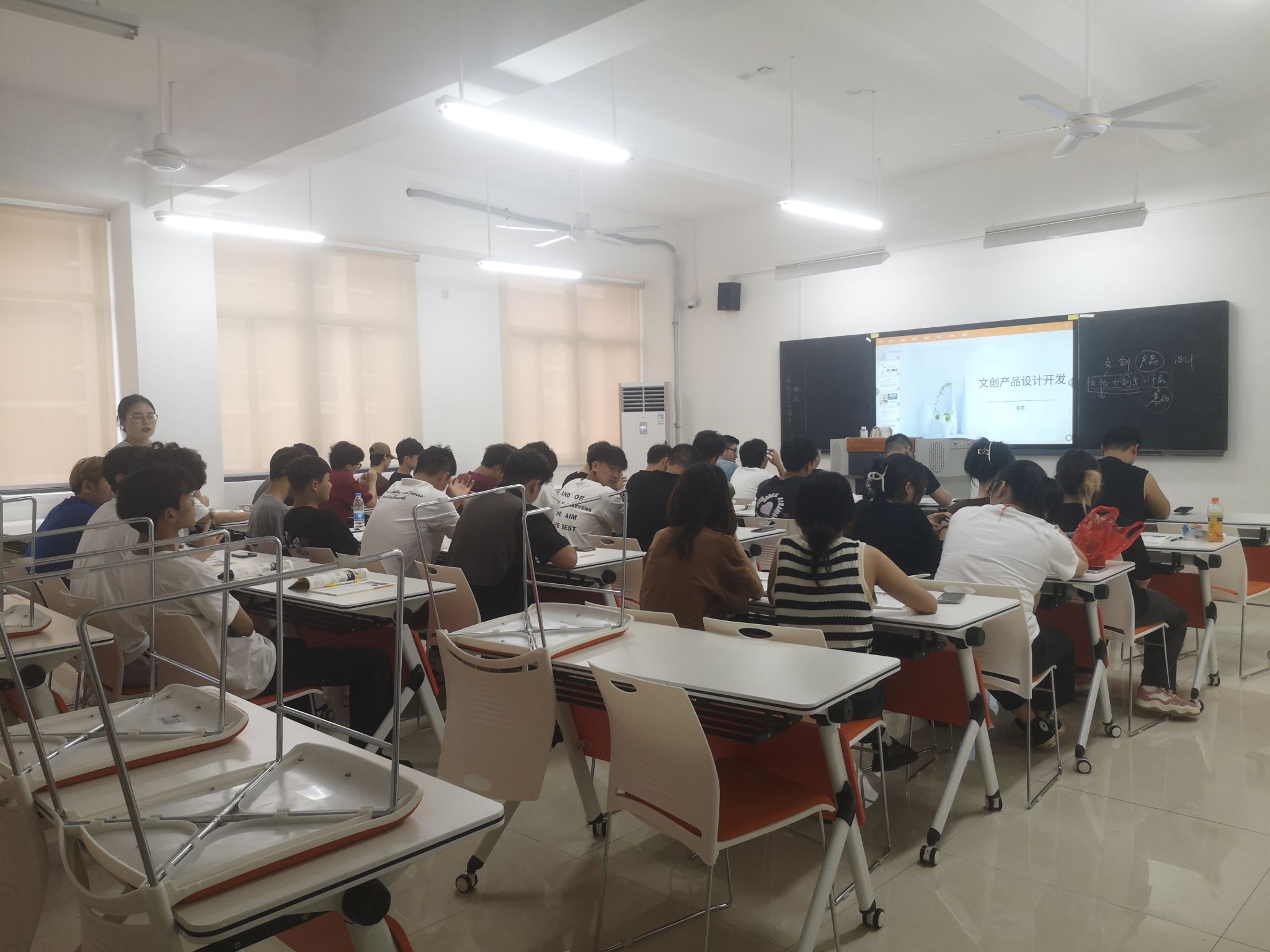 休闲服务与管理专业的学生们正在上《海洋文创产品设计》课程。这是基于该专业自身海洋特色而开设的专业拓展课程,只见学生们聚精会神地听着老师的讲解,保持着良好的课堂秩序。