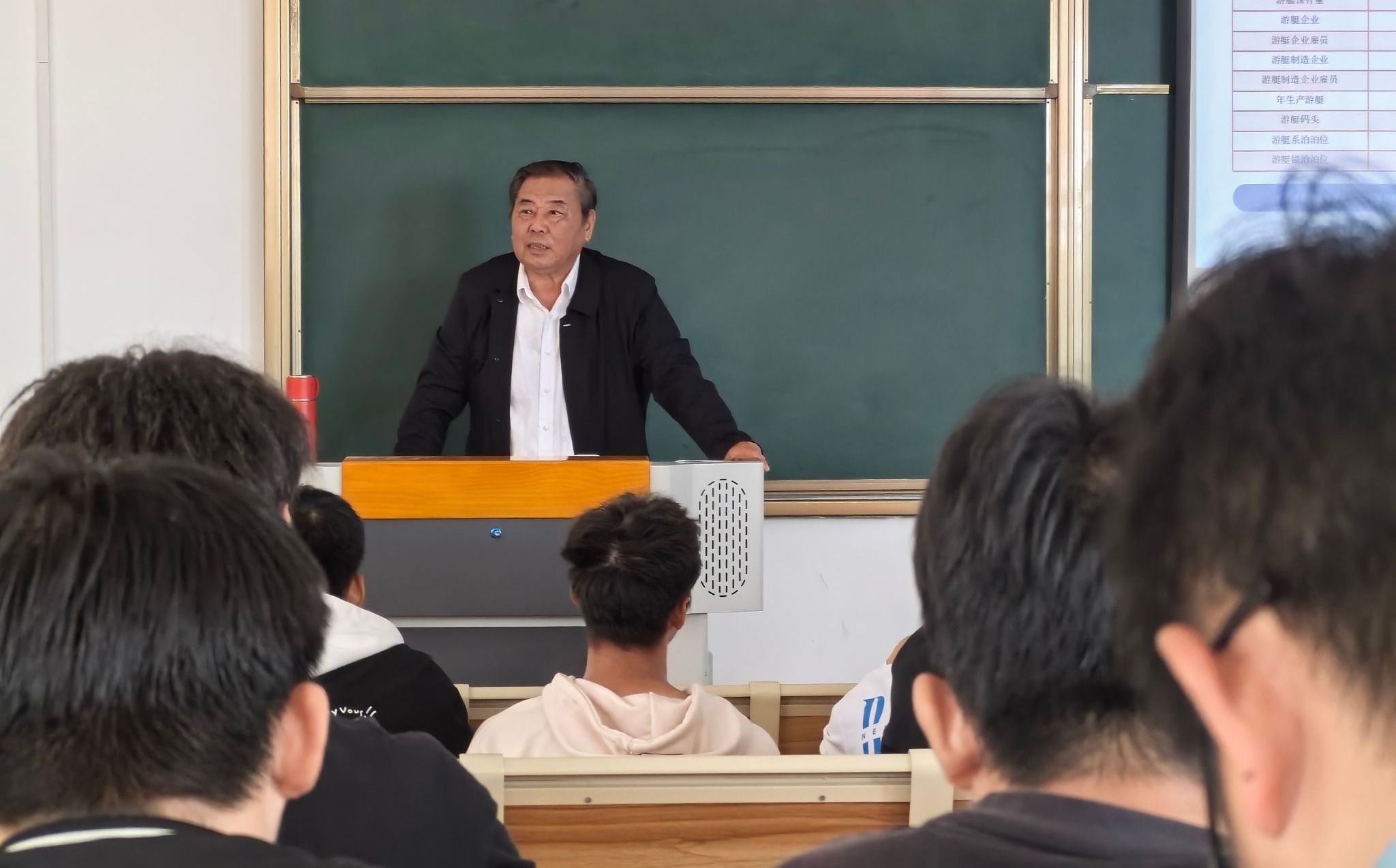 根据专业涉及面的不同,留会长以全国游艇发展专家指导委员会副主任委员的视角,分别从“设计制造”和“休闲文旅”出发,用宏观的视野带领着学生们用自身专业的角度融入游艇行业的“前世今生”中。