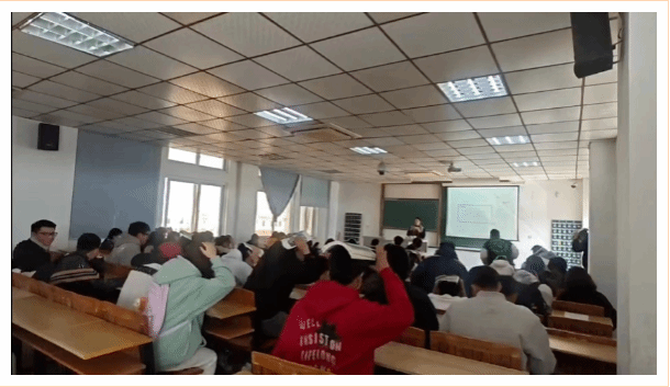 先由辅导员刘老师给学生们讲解地震应急避险知识和安全疏散方法,并一再强调逃生过程中的要点,加强学生们的记忆。
