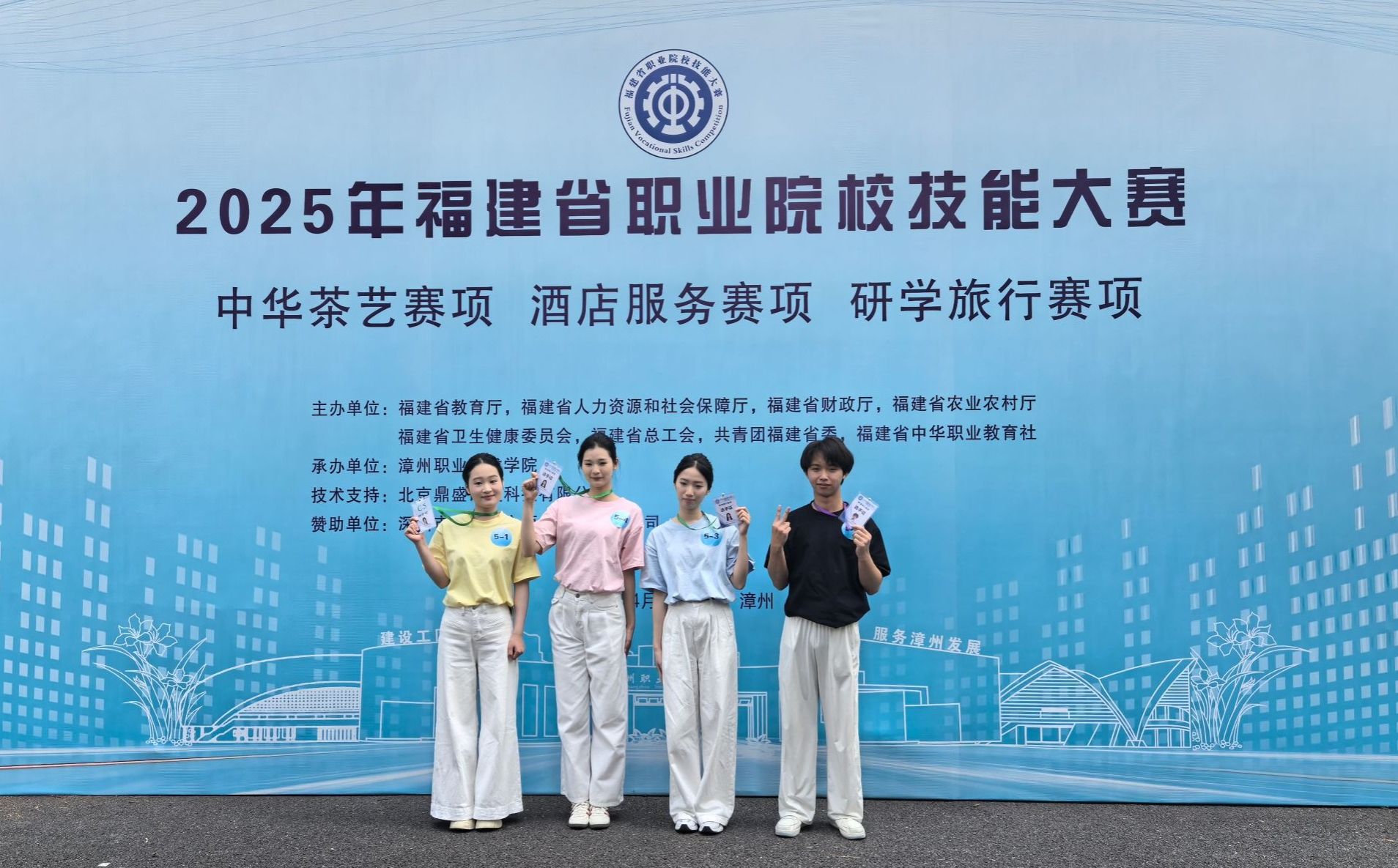 4月11日至13日,由福建省教育厅等八部门联合主办的2025年度福建省职业院校技能大赛高职组4个赛项相继落幕。潘芳芷、闫花帅两位老师率领吴建新、郑宁、黄宇婕、郭静怡四名同学参与其中的“研学旅行赛项”,与其他24支队伍展开角逐,最终取得三等奖(总分第10)。