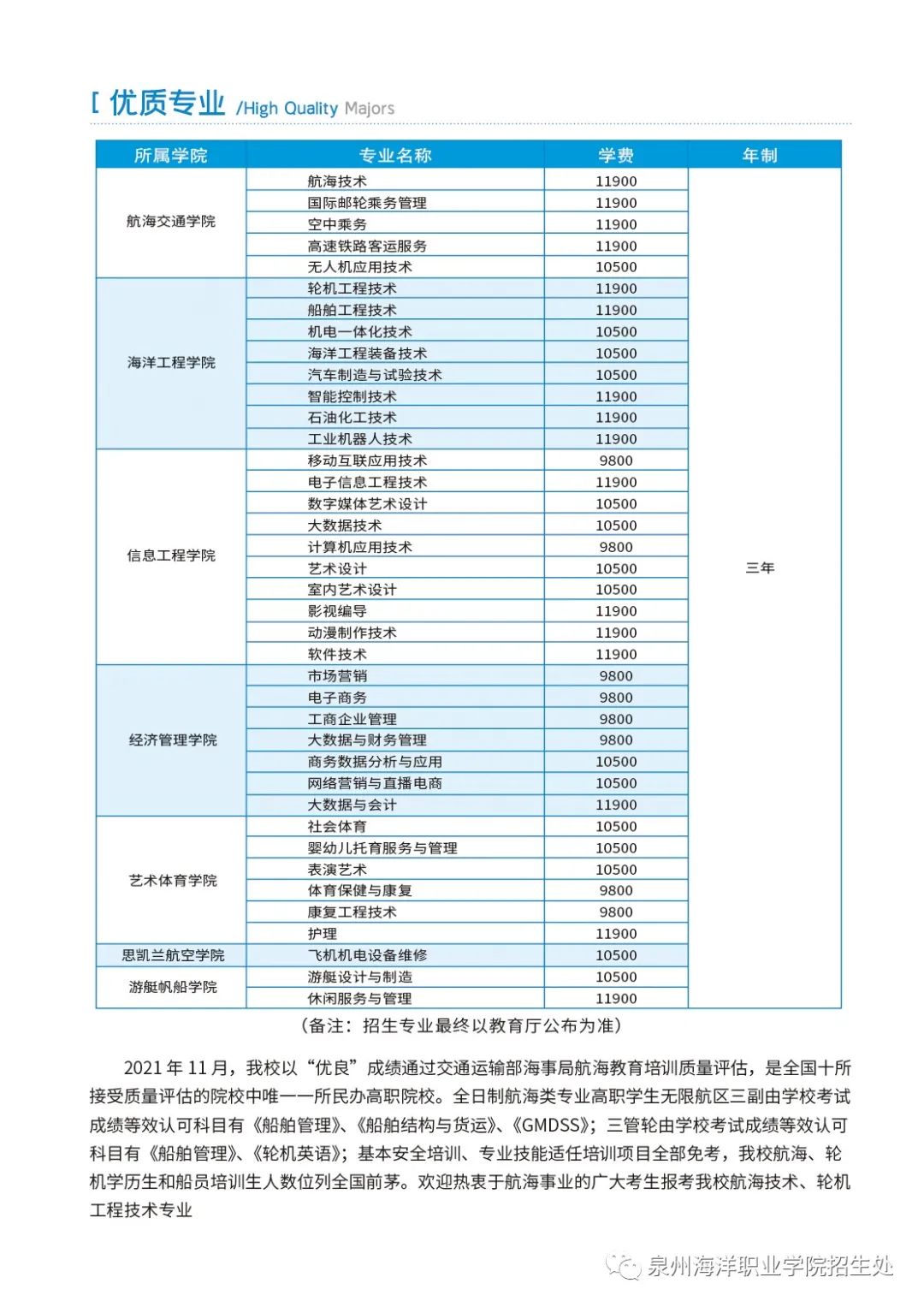 权威发布!2023年泉州海洋职业学院秋季招生简章