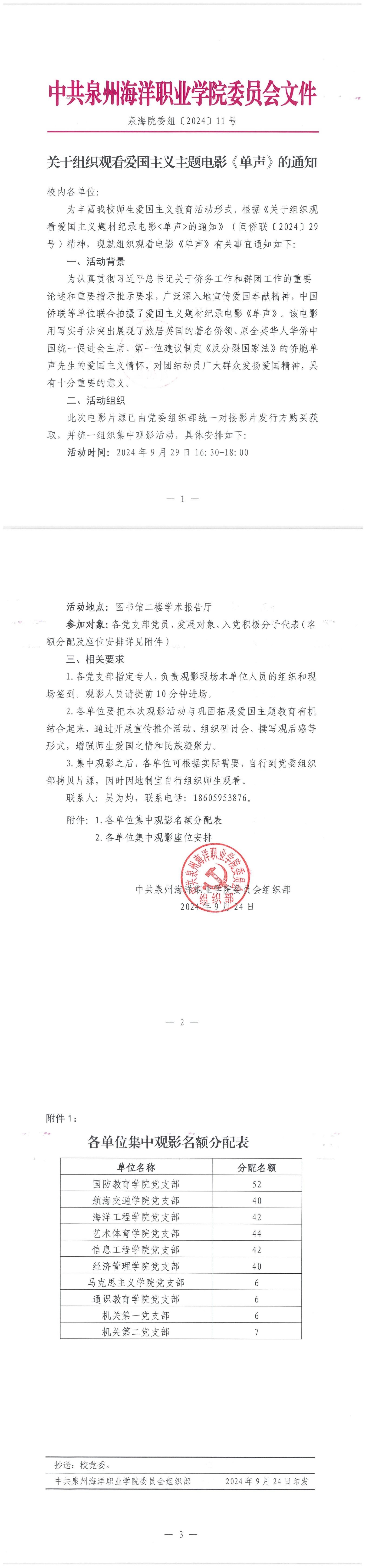 泉海院委组〔2024〕11号 关于组织观看爱国主义主题电影《单声》的通知