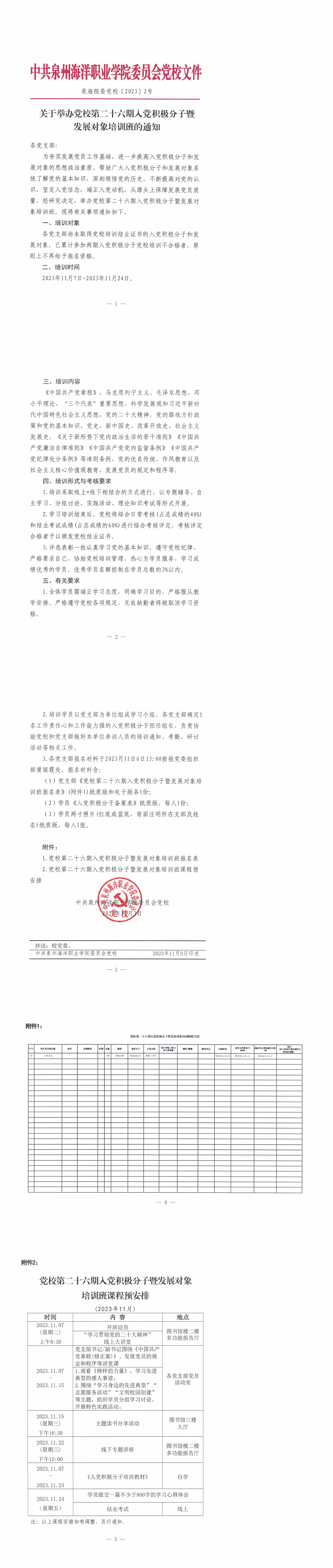 关于举办党校第二十六期入党积极分子暨发展对象培训班的通知