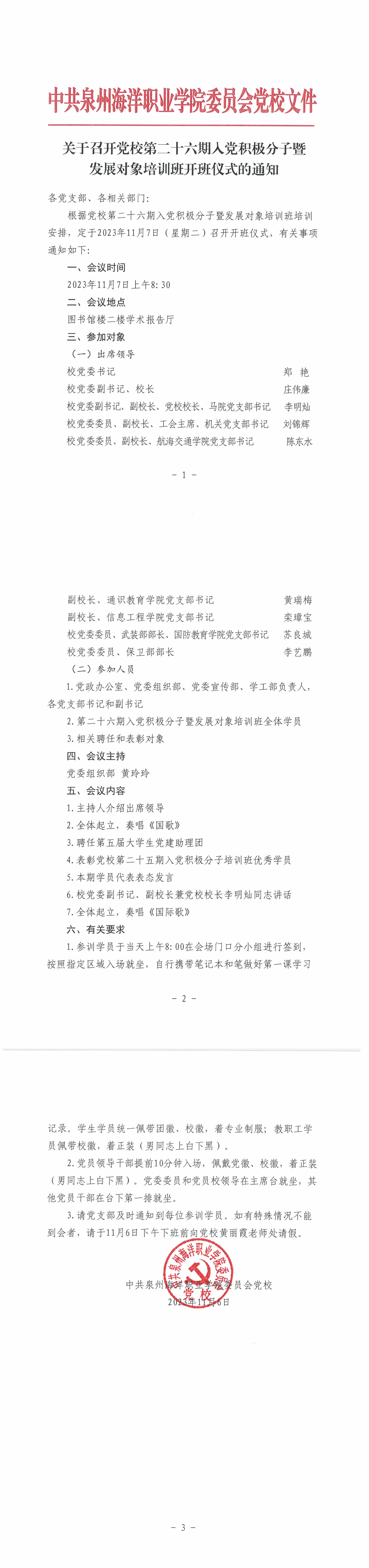 关于召开党校第二十六期入党积极分子暨发展对象培训班开班仪式的通知